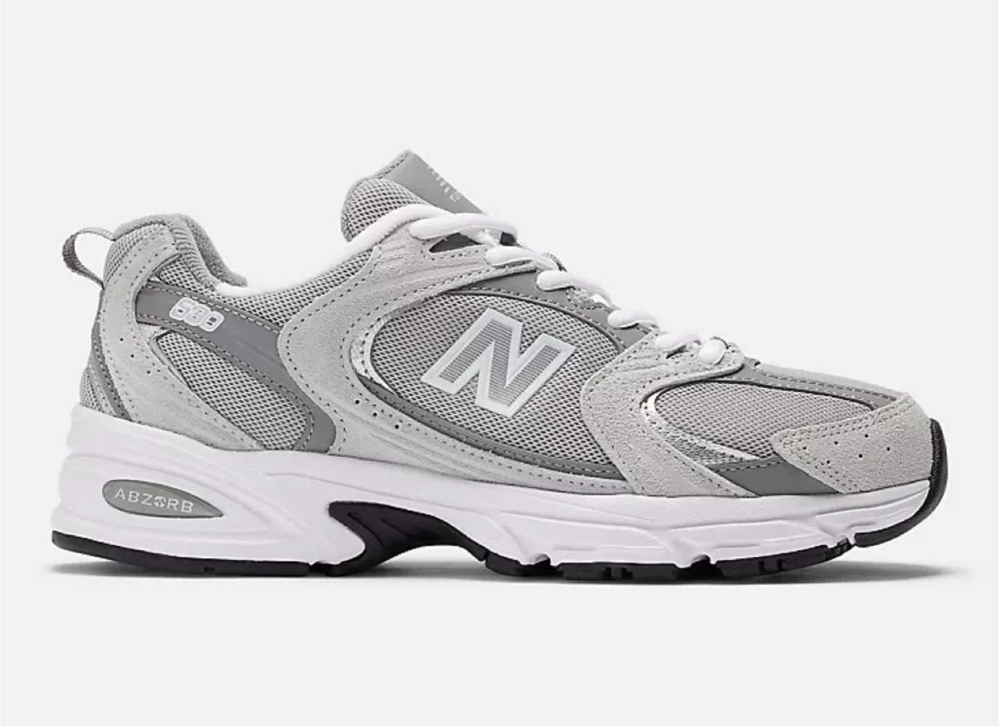 Selling a pair of New Balance 530 sneakers in grey. They feature ABZORB cushioning for superior comfort and shock absorption. The classic design makes them a great addition to any wardrobe!