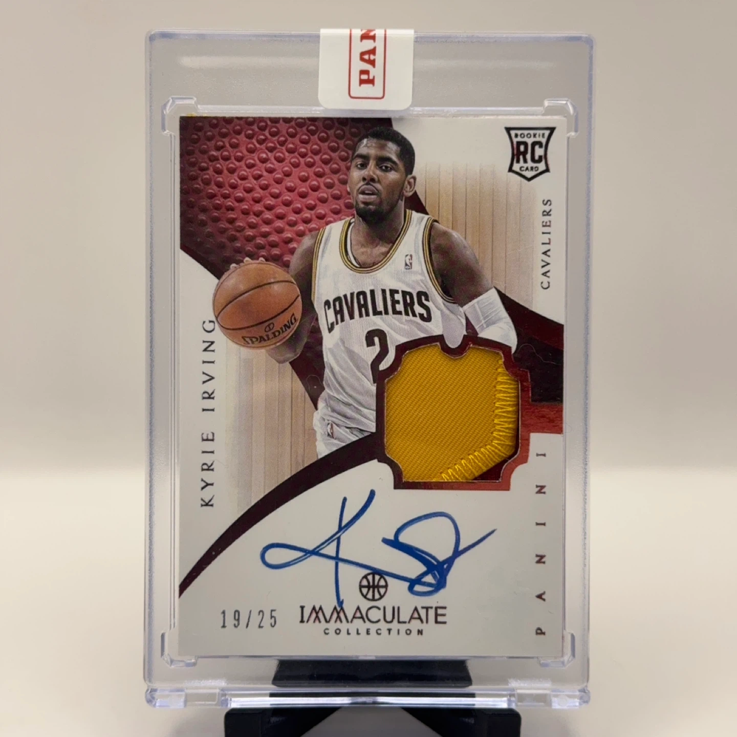 Fully custom-made 2012 Kyrie Irving Immaculate Rookie Patch Auto – 19/25 style card for display purposes only. NOT authentic or officially licensed.