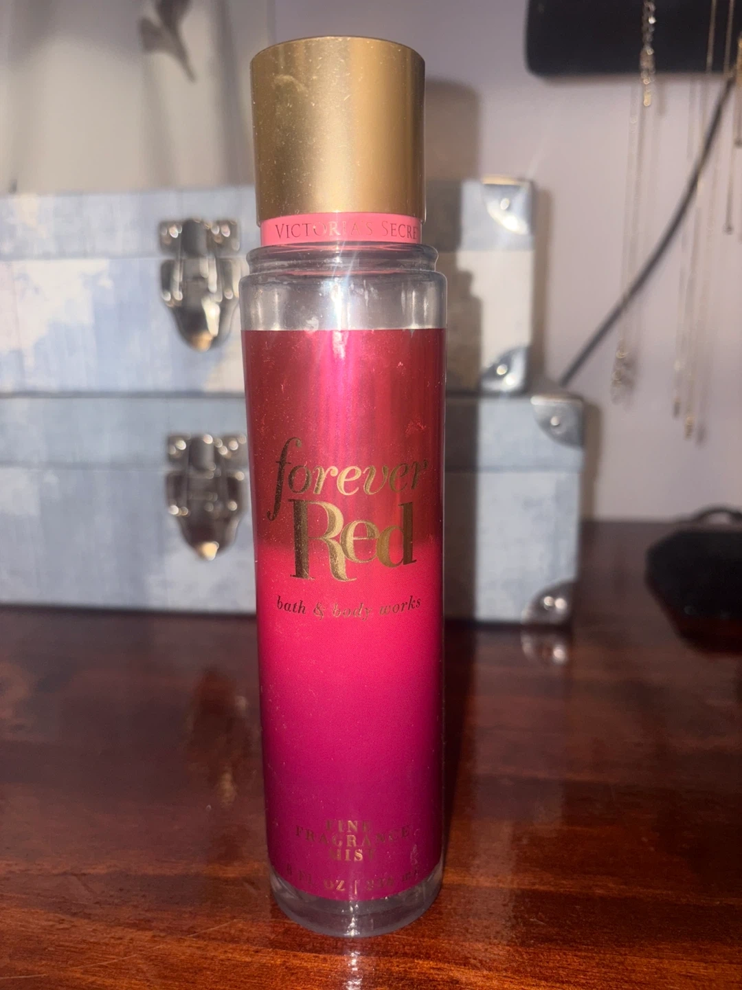 20Selling a Bath’s Body Works Forever Red Fine Fragrance Mist! It features fragrance notes of fiery pomegranate, red peony, rich vanilla rum, and oak wood. It is dermatologist tested, too