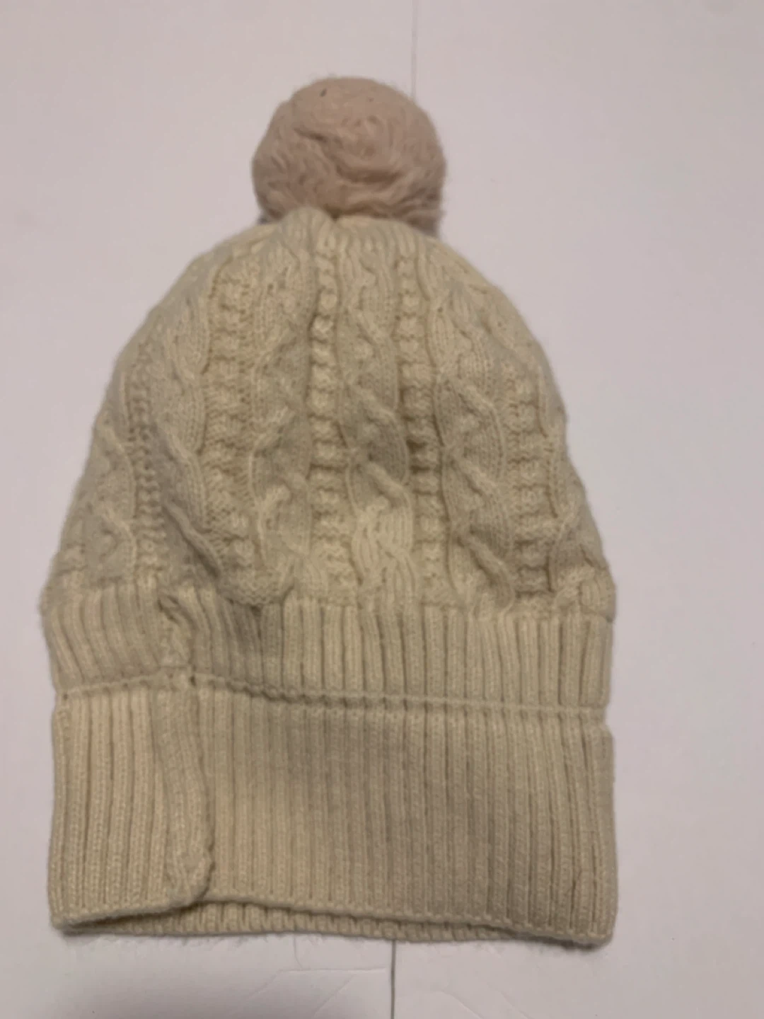 Selling a cream-colored knit beanie from The North Face! It's in great condition and ready to keep you warm. The beanie is made of a soft knit material and features a classic design with a pompom on top