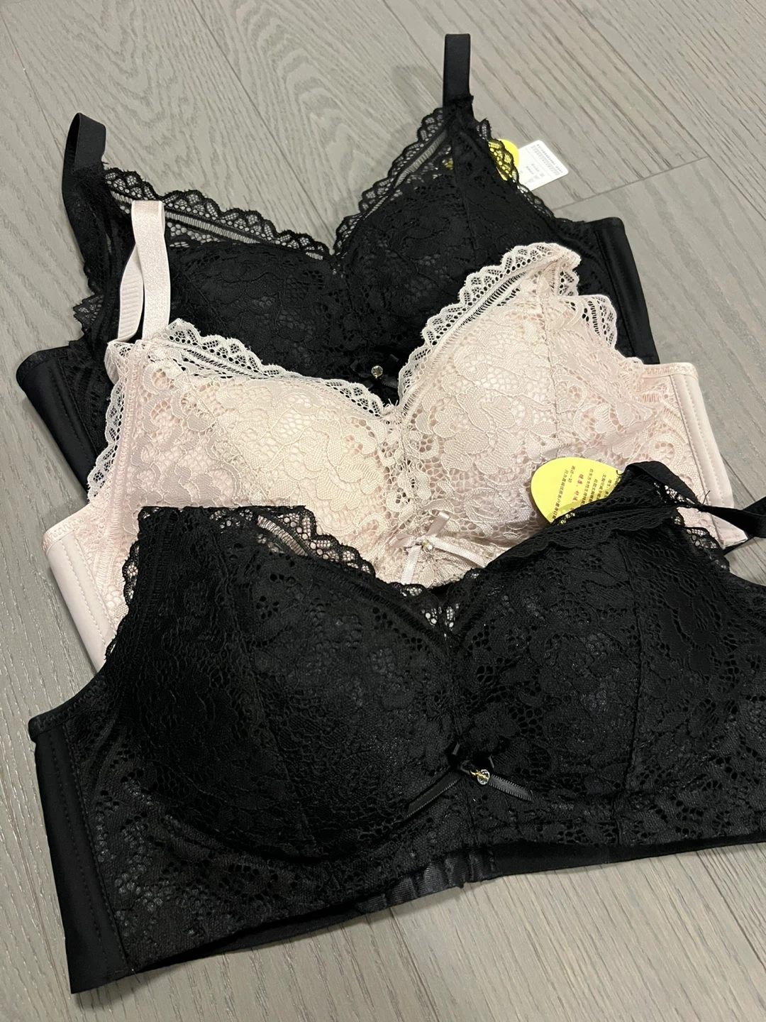Selling a set of bras in black and beige. They feature a delicate lace design and are in size 38/85. Perfect for everyday wear! 3/$20