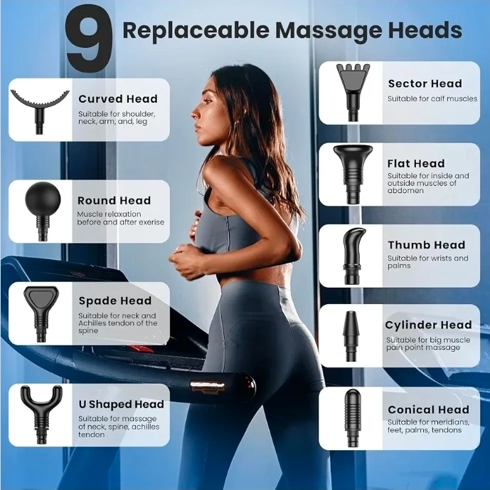 Massage Gun, Deep Tissue Massager Gun for Pain Relief, Percussion Muscle Massage Gun for Athelets, Handheld Electric Back Massager with 30 Speed Levels & 9 Massage Heads