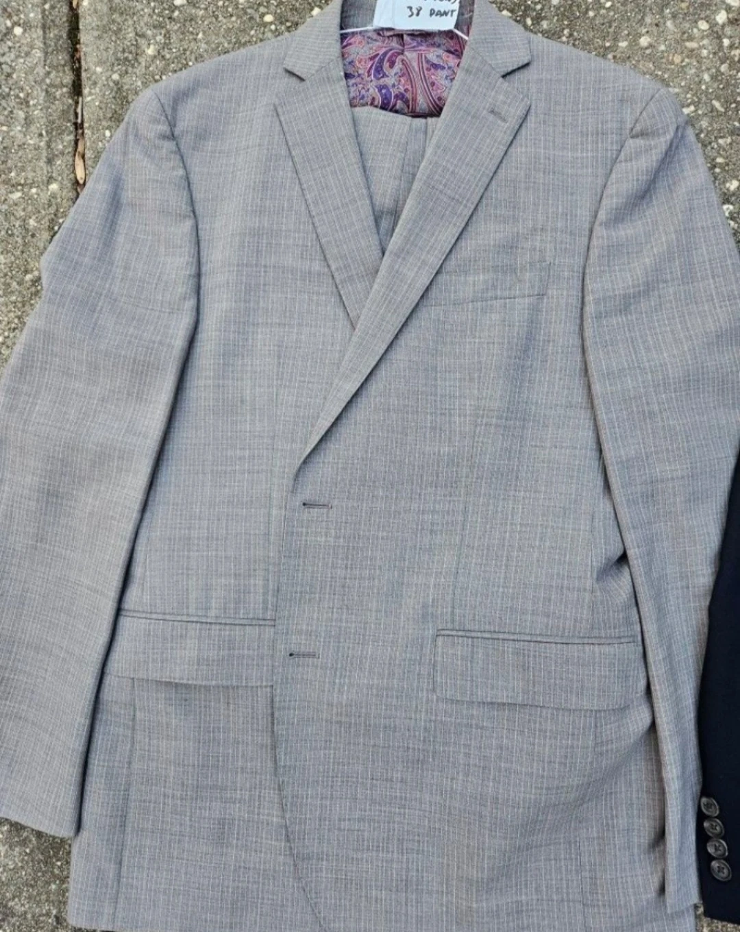 102 used expensive wool suits. Size 44 long jacket and size 38 pants. These were selling for $800 each at stores. One is blue the other gray stripes. 2 for $75. Great price. Cash.must Pickup sheepshead bay brooklyn