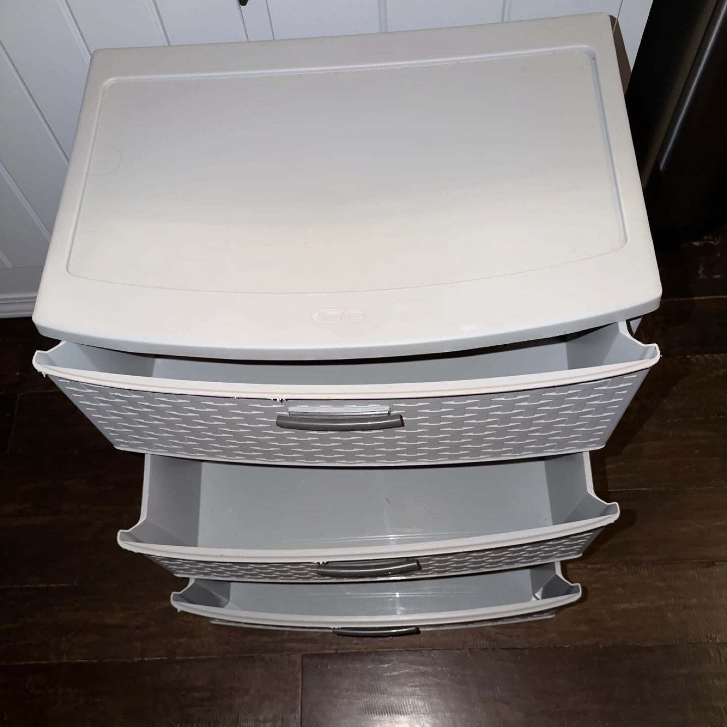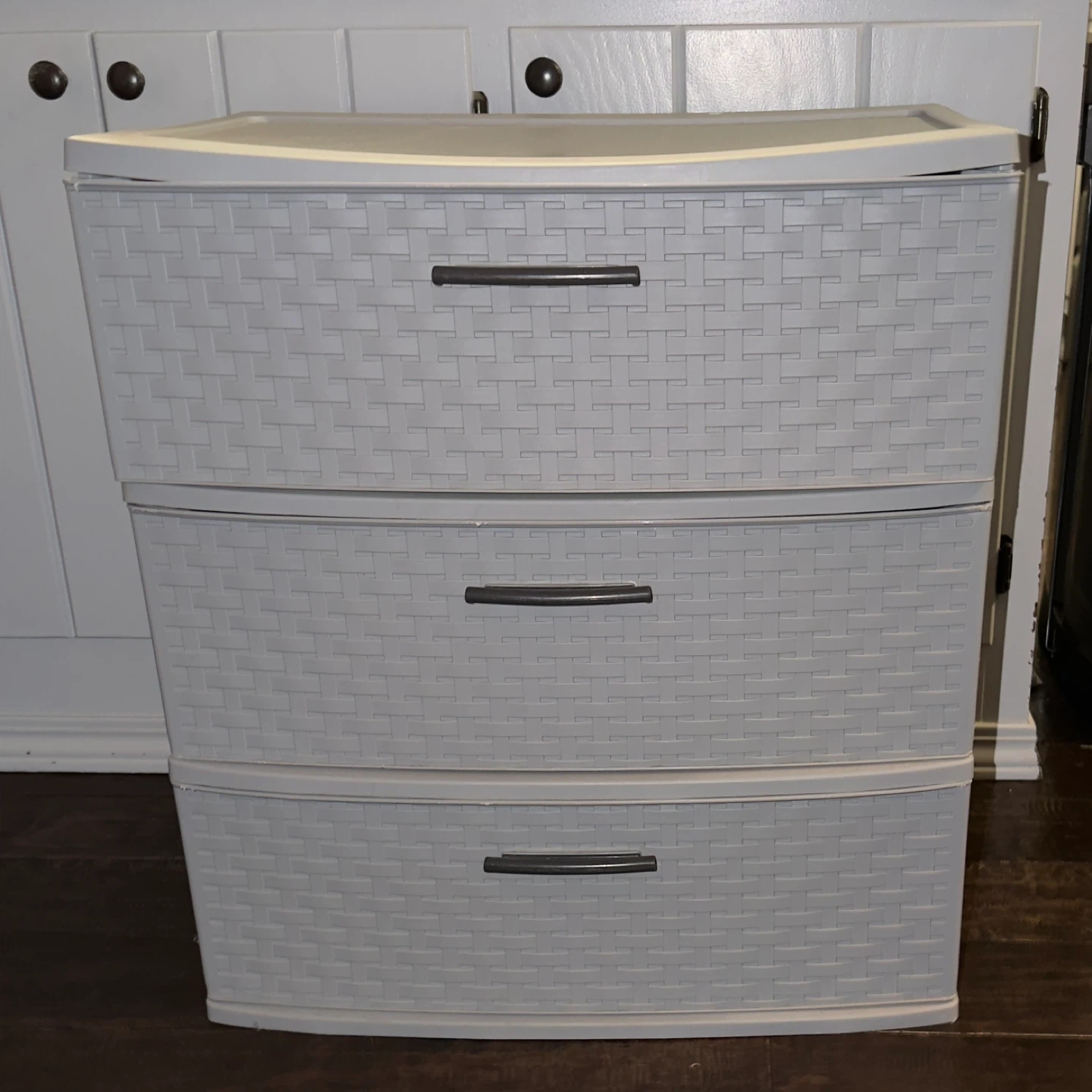 I'm selling a Sterilite Weave 3-drawer storage tower! It's in great condition and perfect for organizing any room. The dimensions are 15 3/4" D x 21 7/8" W x 24" H (40.3 cm x 55.6 cm x 61 cm).