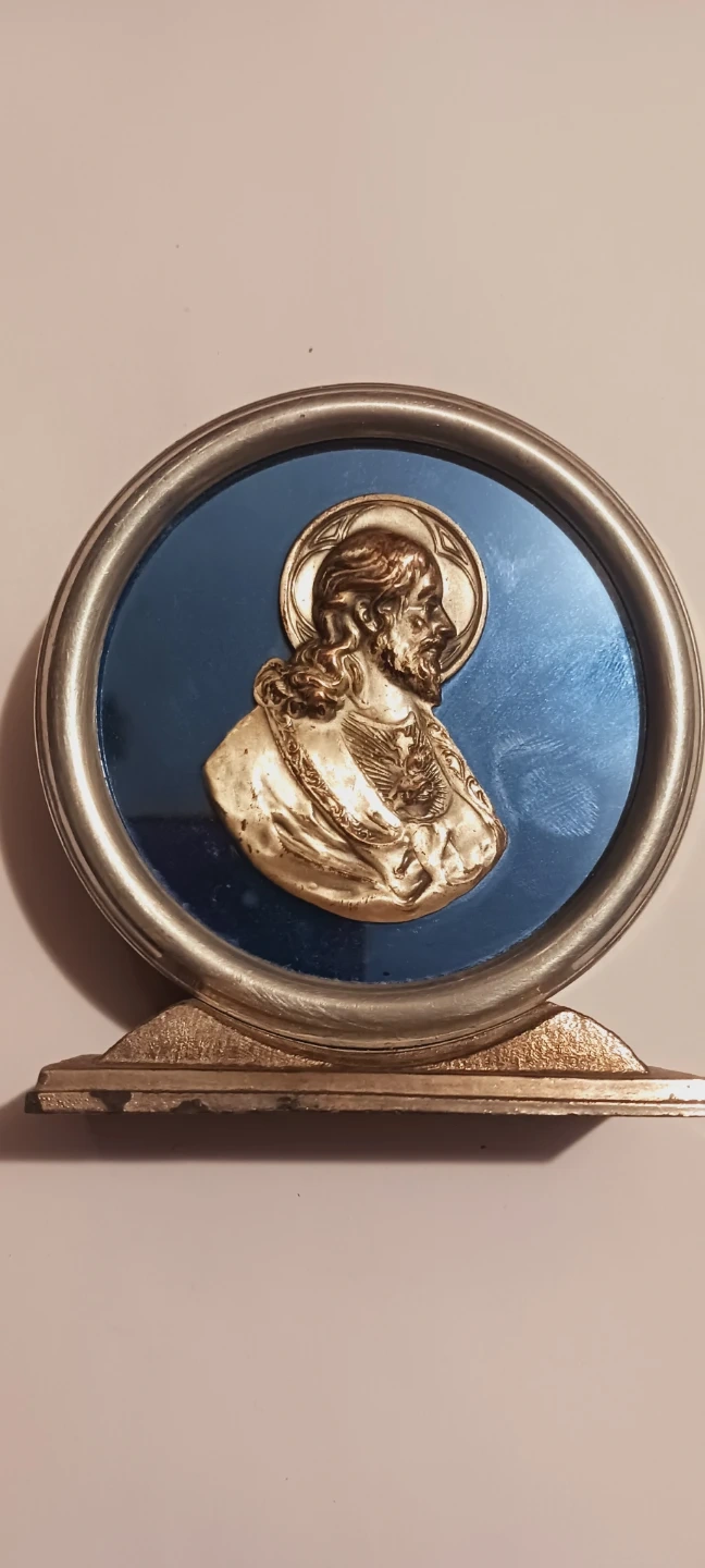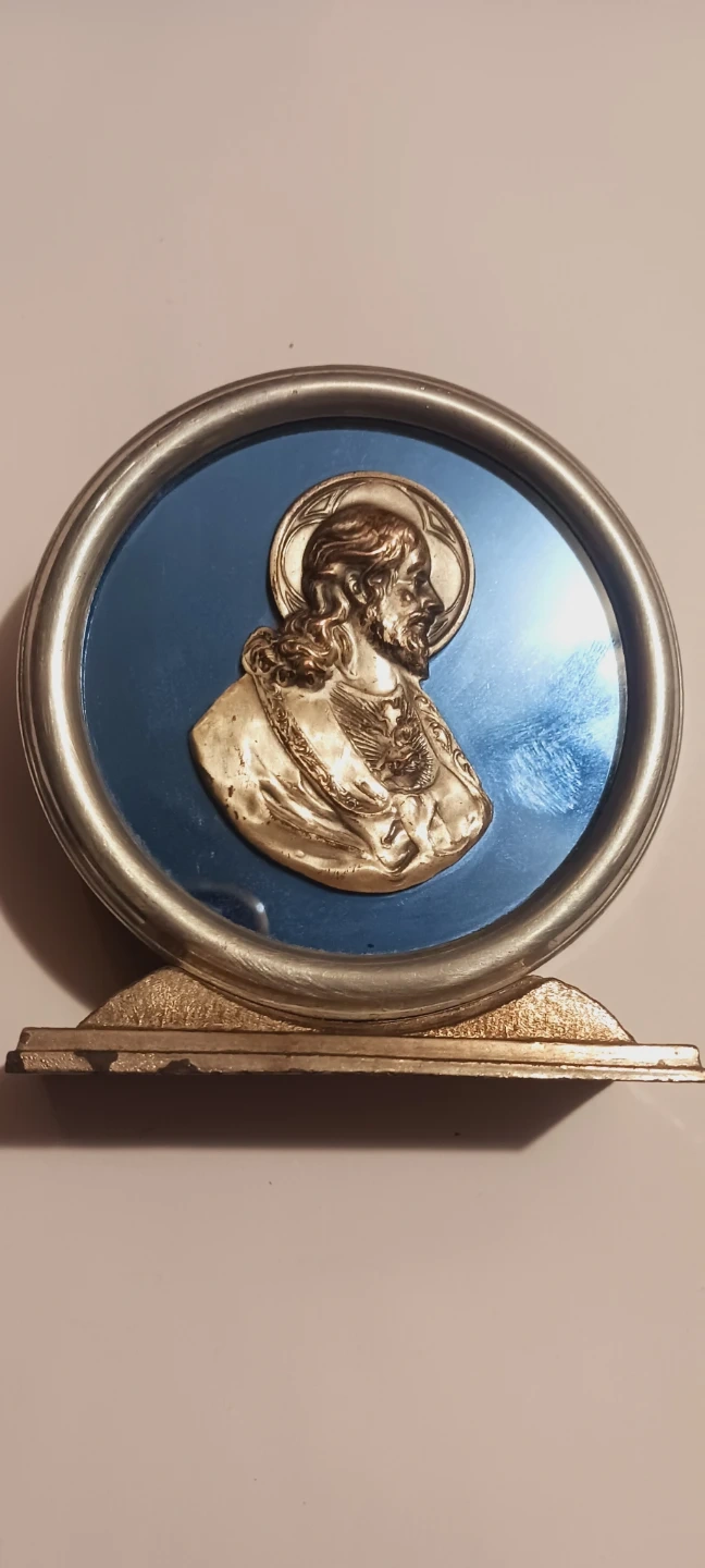1000+Beautiful Old Vintage Religious Art Miniature Home Decor. It features a silver frame and a blue background. 4"×3". Excellent condition. ALL MY PRICES ARE NEGOTIABLE !!