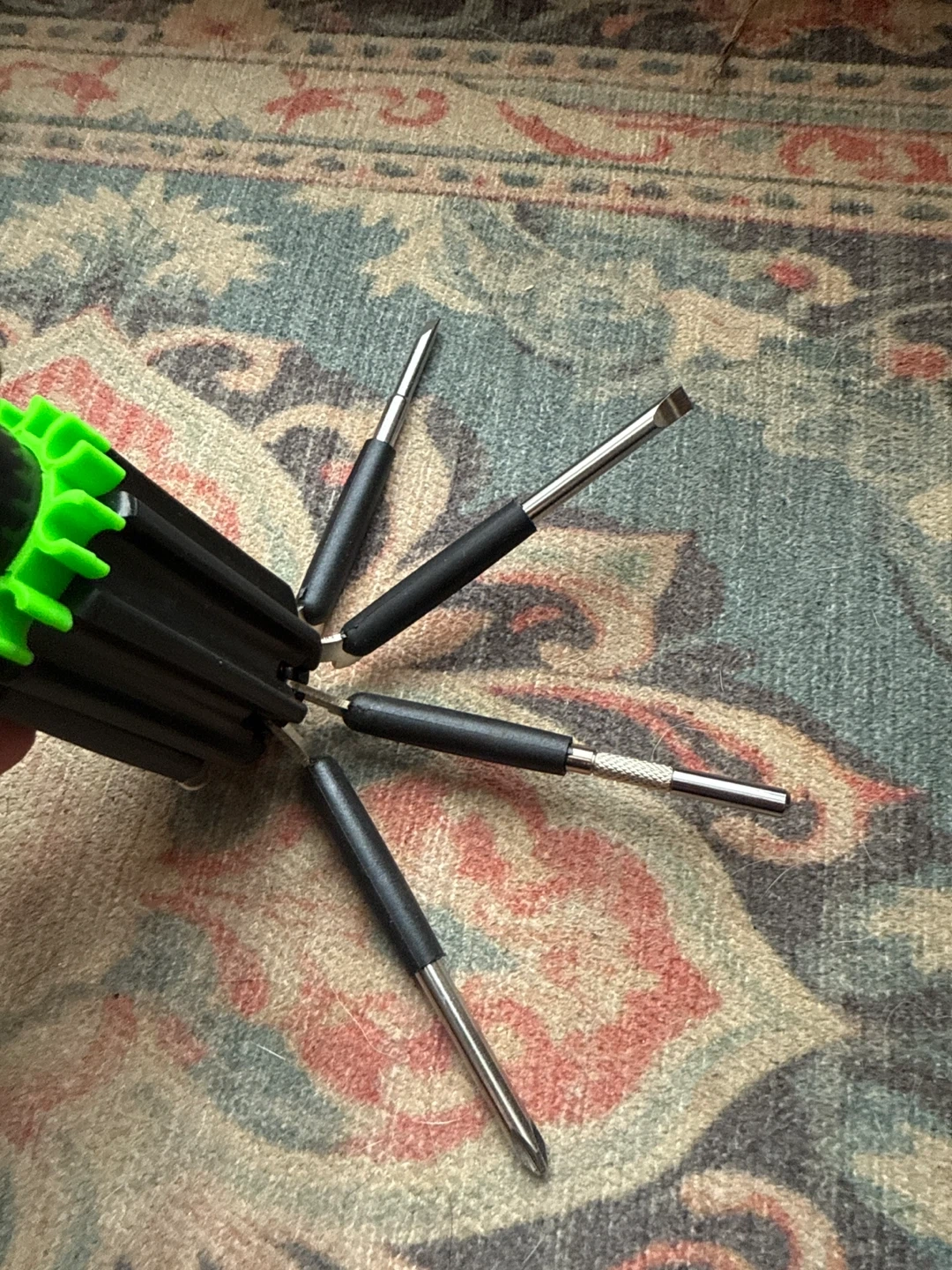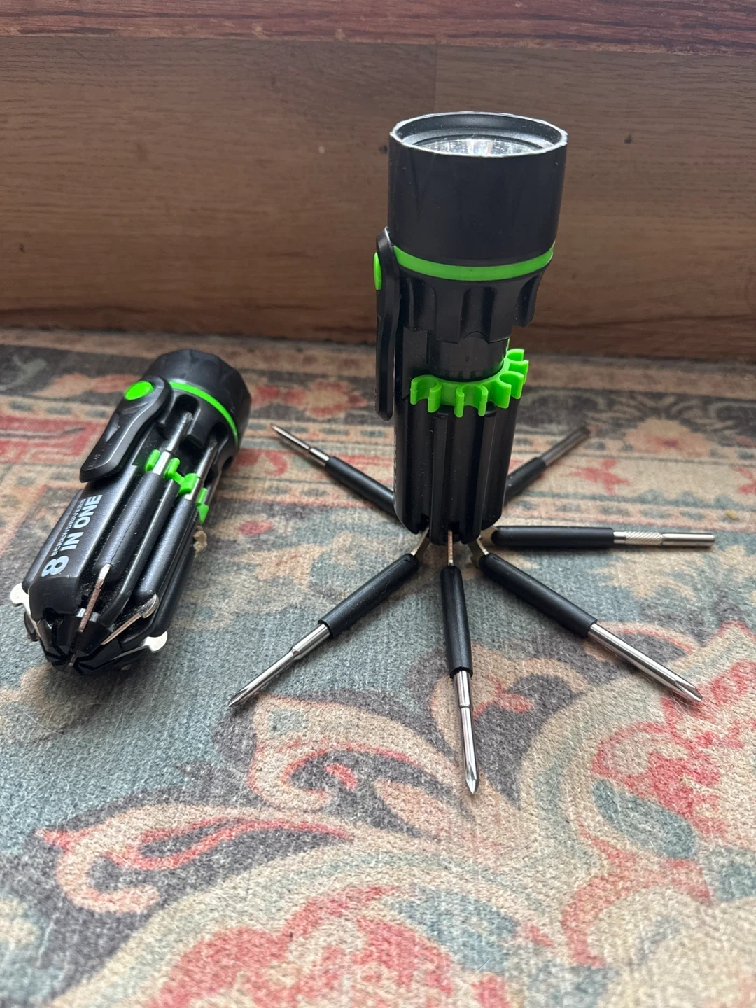 Selling a set of two 8-in-1 screwdrivers with built in flashlight! They're super handy and compact, perfect for small jobs around the house or keeping in your car for emergencies. Brand new, never used