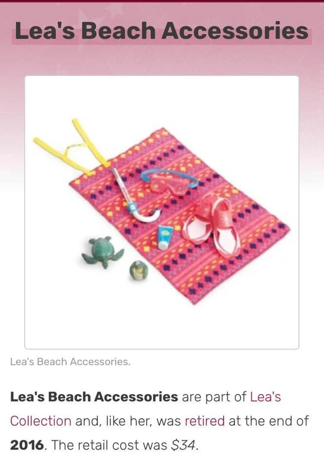 Body is clean, no marks, stains or tears. Includes Lea, all Lea’s clothing and Lea’s accessories shown.