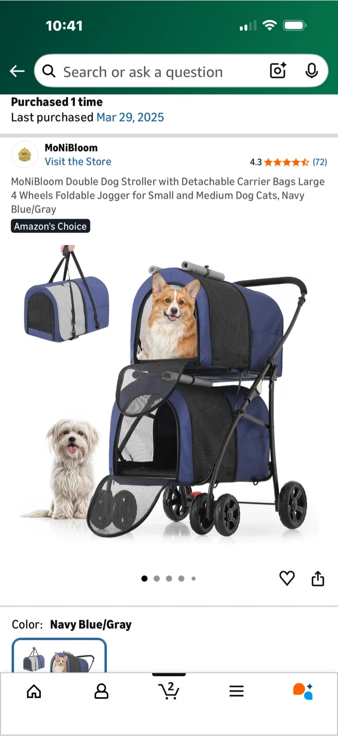 Buy & SellMoNiBloom Double Dog Stroller - Navy Blue/GrayMoNiBloom Double Dog Stroller - Navy Blue/Gray$94Selling a MoNiBloom double dog stroller in navy blue and gray! It features detachable carrier bags and a 4-wheel foldable jogger design. Perfect for small and medium dogs or cats!ConditionNew0 chats·0 favorites·19 viewsSELLERverifiedOmarHamilton Heights650 reviewsWHERE TO MEET551 west 152