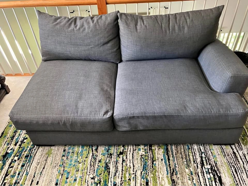 Z Gallerie med grey, clean and in very good condition. Deep 34” comfy cushions with 2 large pillows included. Plus, covers are machine washable for easy care. New extra cushion included. Cash only.