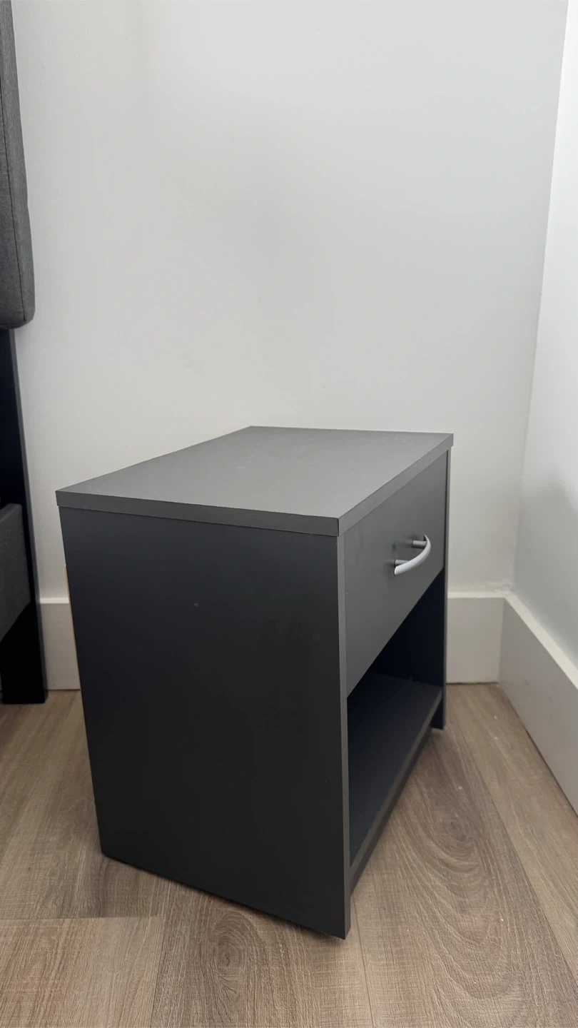 Selling a simple black nightstand! It has a drawer for storage and an open shelf below. Perfect for keeping your bedside essentials close at hand
