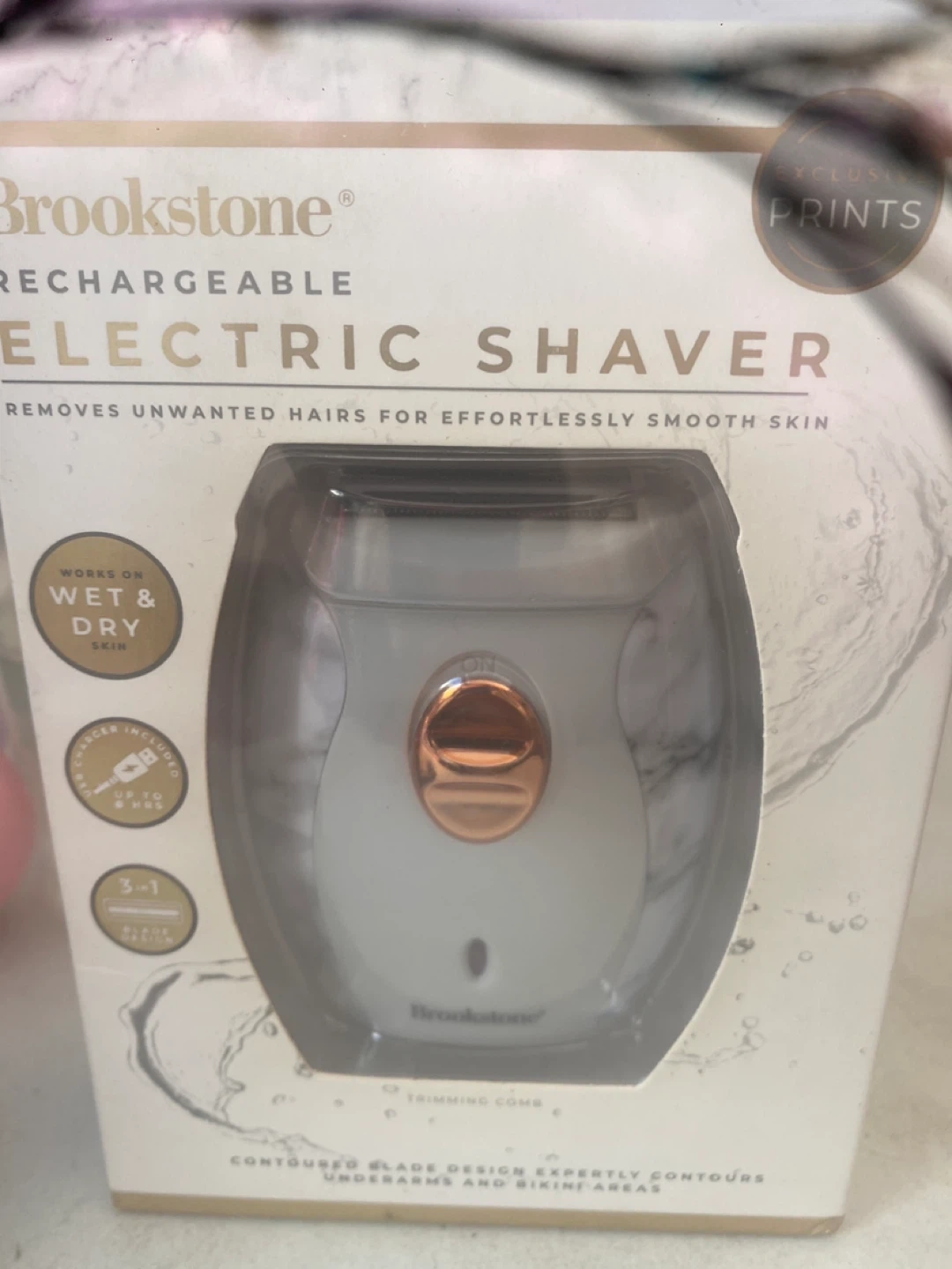 Selling a brand new Brookstone rechargeable electric shaver! It's still in its original packaging and has never been used. This shaver is designed to remove unwanted hairs for effortlessly smooth skin. It works on both wet and dry skin. It's a cordless design with a rechargeable USB cord included, and it's compact and discreet. A trimming comb is also included!