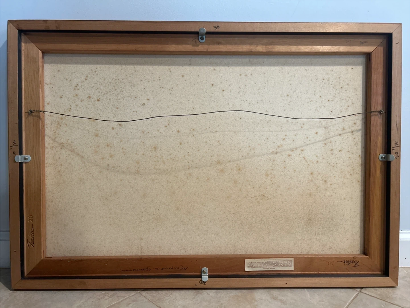 A Modernist Style Abstract Painting with a neutral color palette and composition. Framed in a light wooden frame and preserved beautifully signed by the artist.
