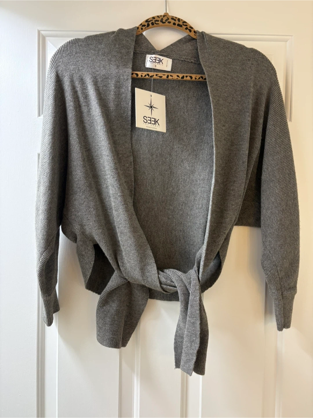 Selling a brand new (with label) SEEK The Label cardigan in size small. It's a stylish gray color and made from a blend of 52% viscose, 27% polyester, and 21% nylon
