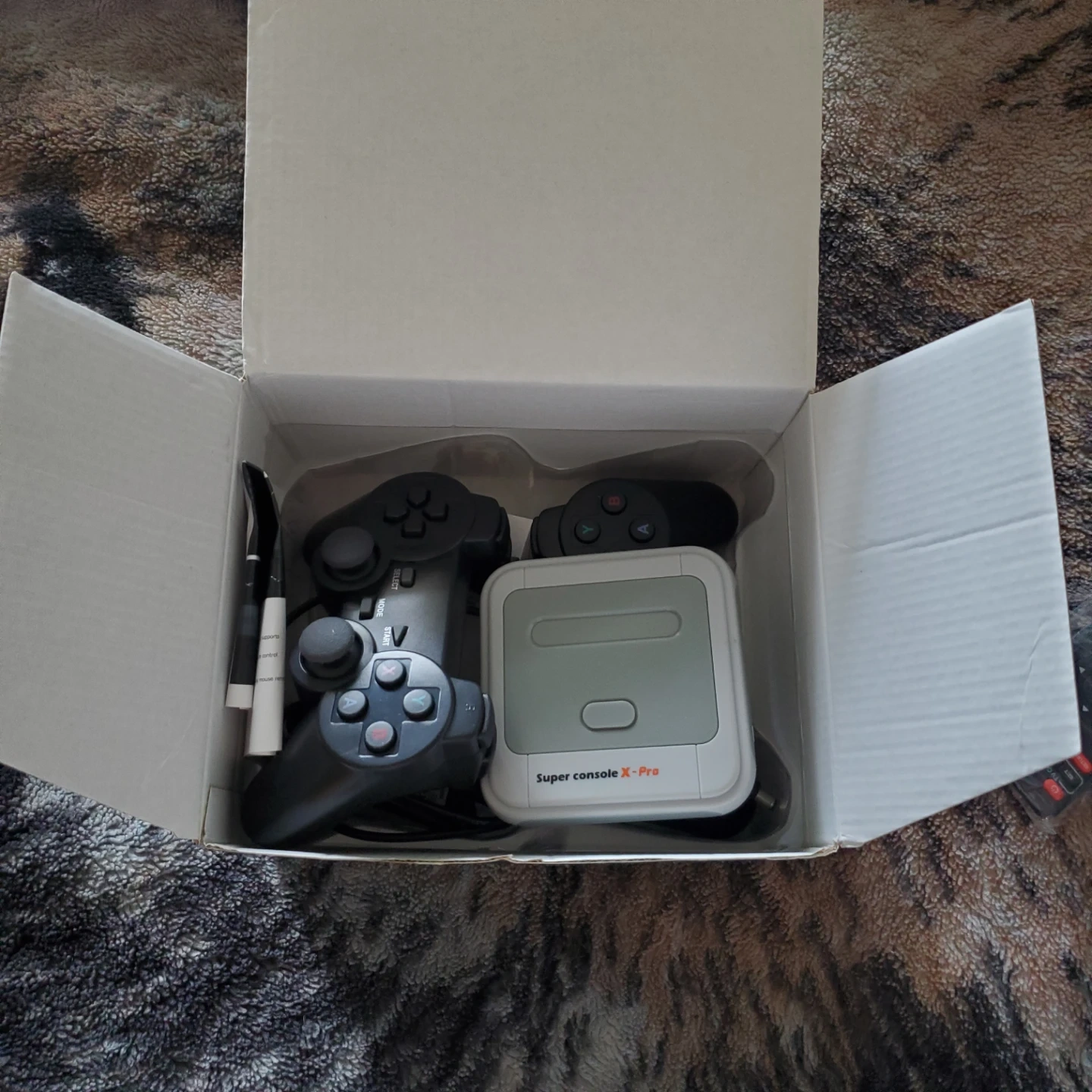 Selling a Super Console X-Pro, a retro gaming system that smoothly runs 80+ emulators like PSP, PS1, N64, and more! It supports HDMI and AV output for powerful performance. Comes with controllers and all components in the original box