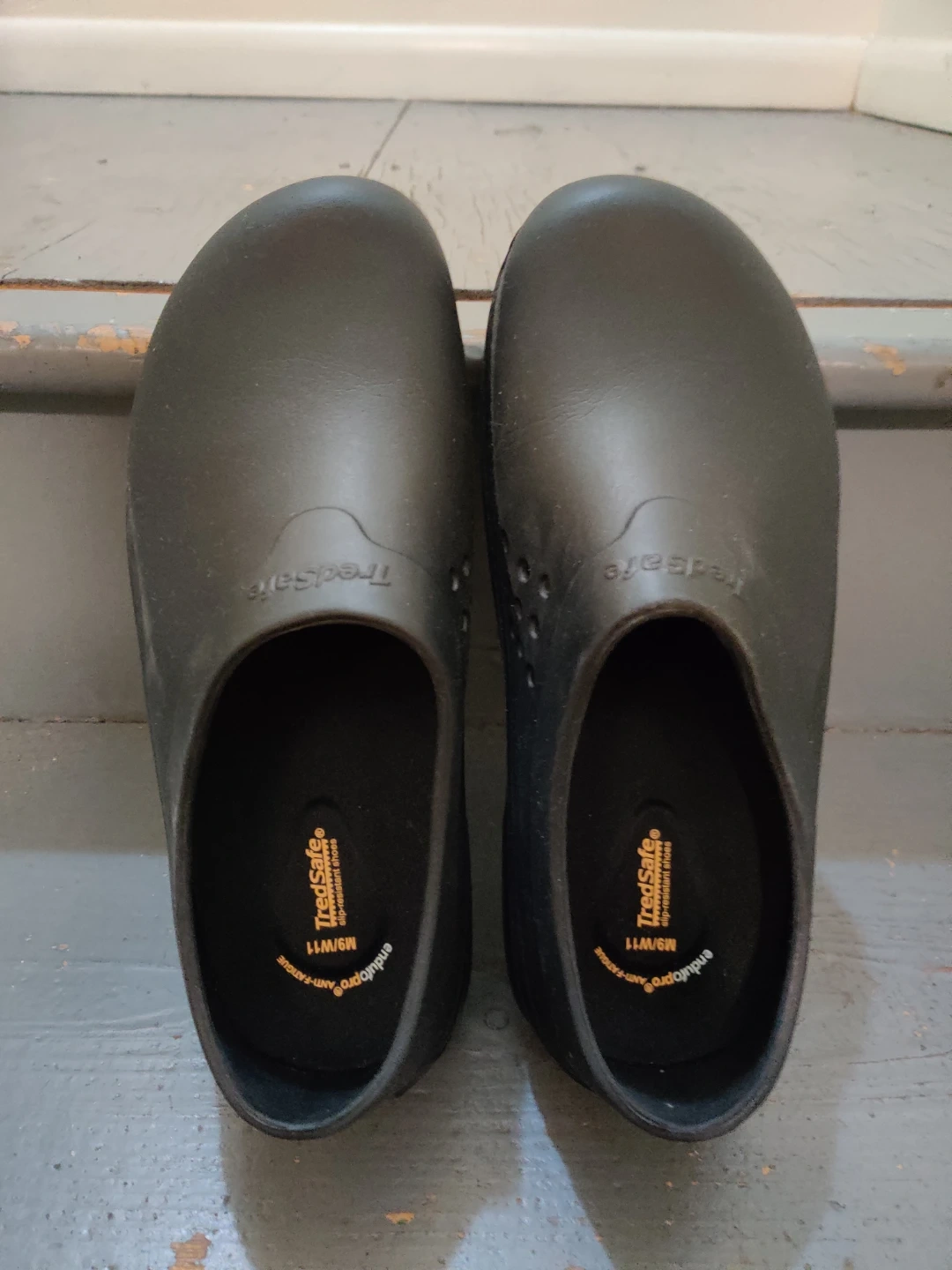 Selling a pair of Tredsafe slip-resistant clogs in size 10. These are great for anyone needing reliable footwear for work or everyday wear. They are designed to provide excellent grip and comfort!