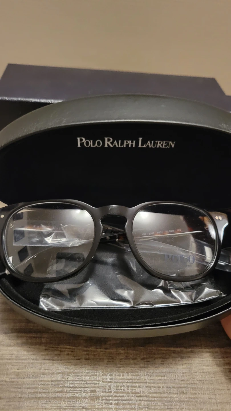 Selling a pair of Ralph Lauren eyeglasses, model PH 2267. They come with the original box and case. The frame has a tortoise shell and black color combination. The size is 52-20-145.