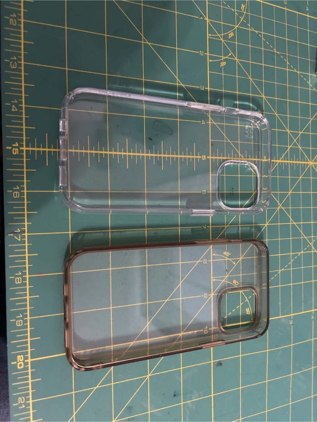 Selling two iPhone cases! One is clear, and the other is a smoky brown color. They look to be in good condition.