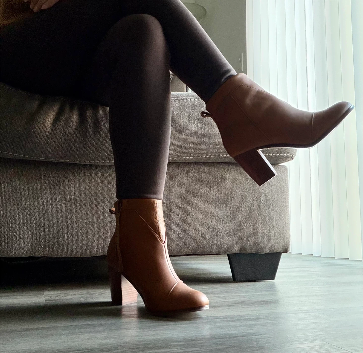 These brown leather ankle boots are in great condition (never worn) and ready for a new home! They feature a comfortable 2.5 block heels and a stylish design. Perfect for adding a touch of sophistication to any outfit.