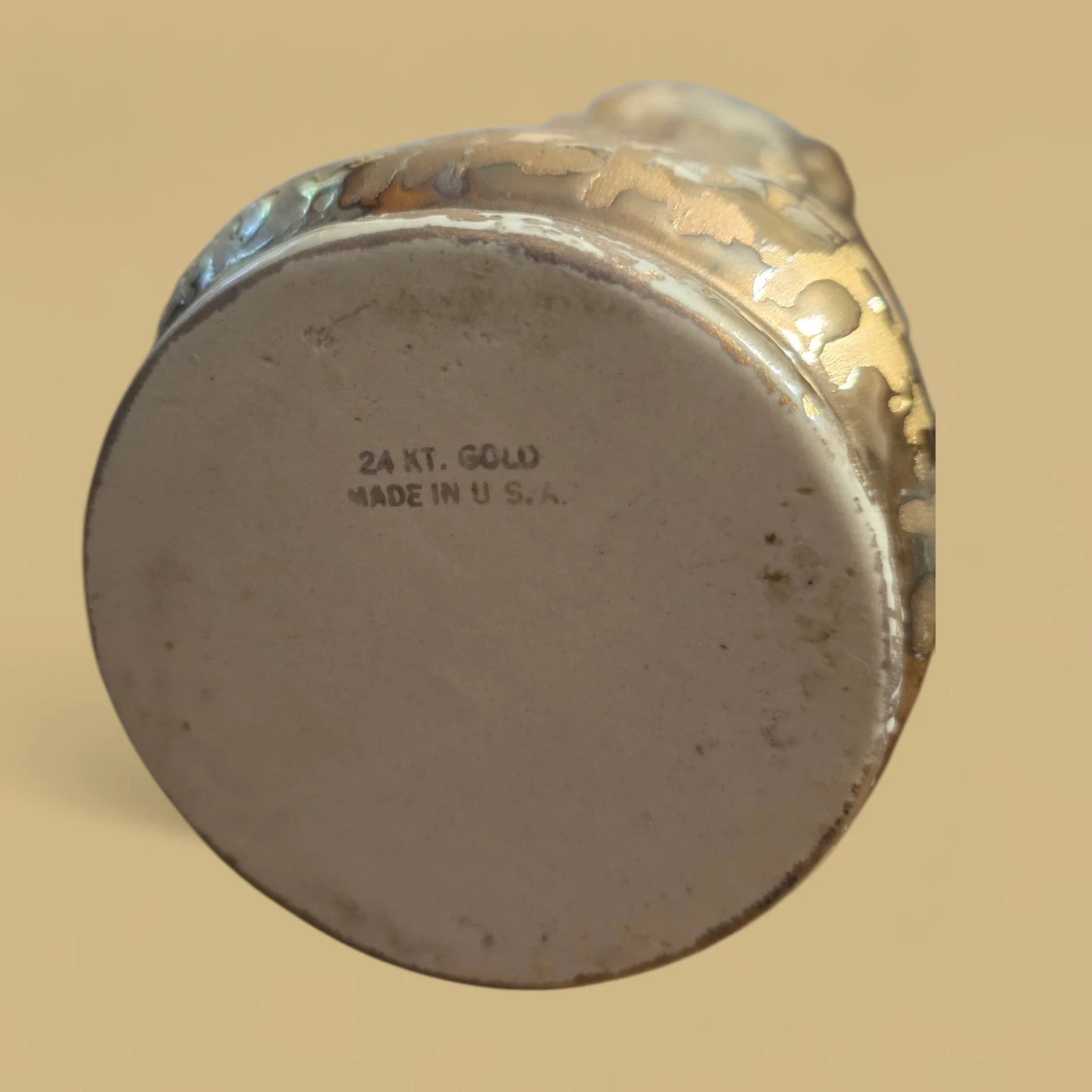 Unique 24 KT. Gold vase, made in the USA! It's a beautiful piece that adds a touch of elegance to any room. Perfect for displaying your favorite flowers or as a standalone decorative item