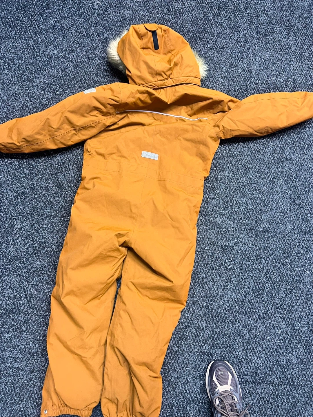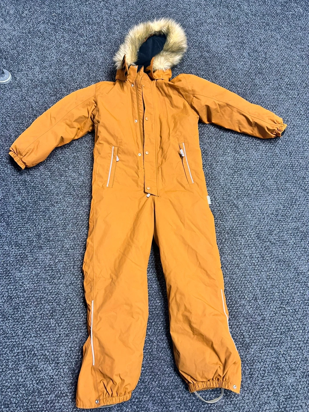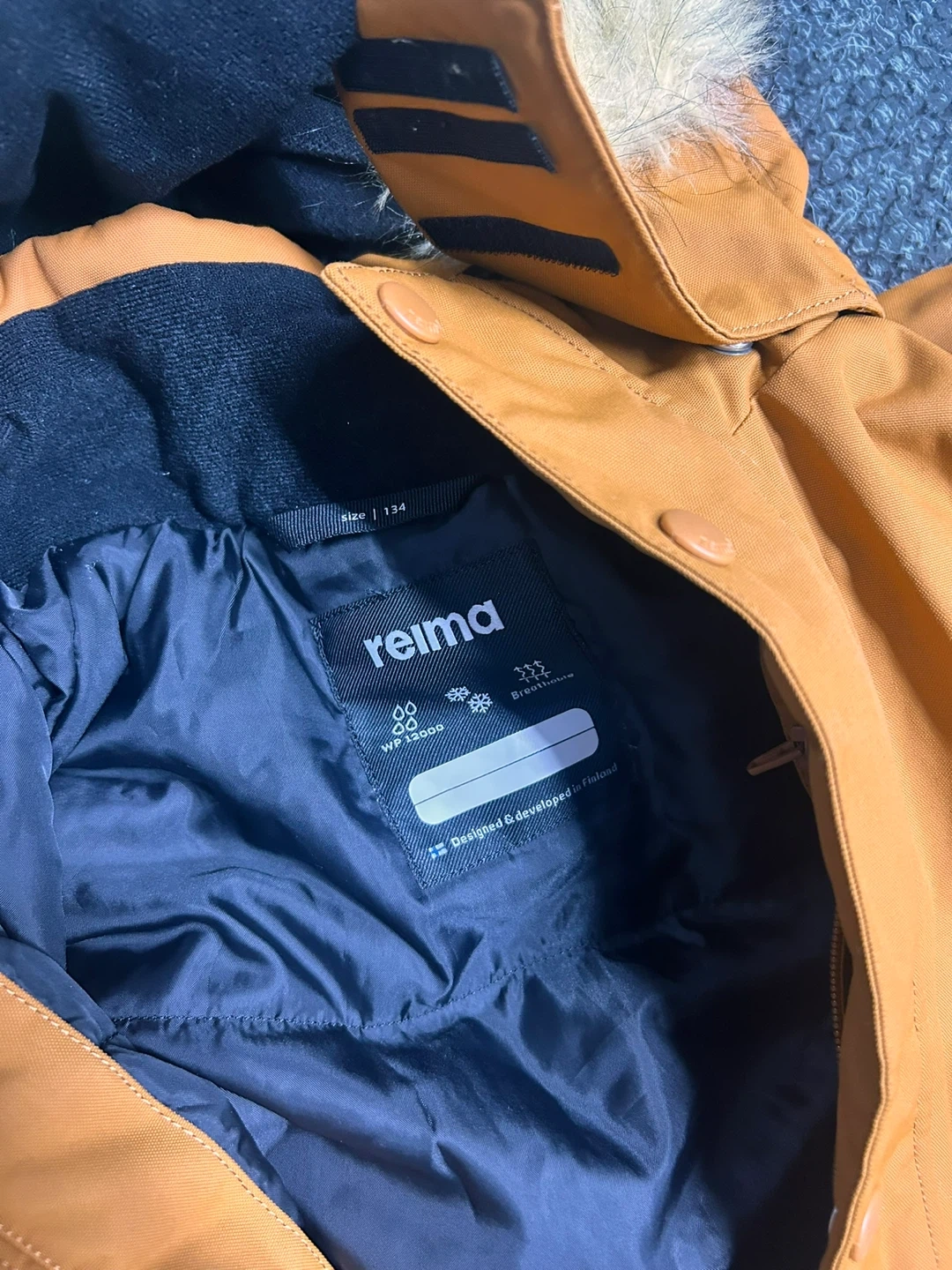 Selling a Reima winter snowsuit in size 134. It's in great condition and ready for the snow! It features a faux fur hood and is designed and developed in Finland