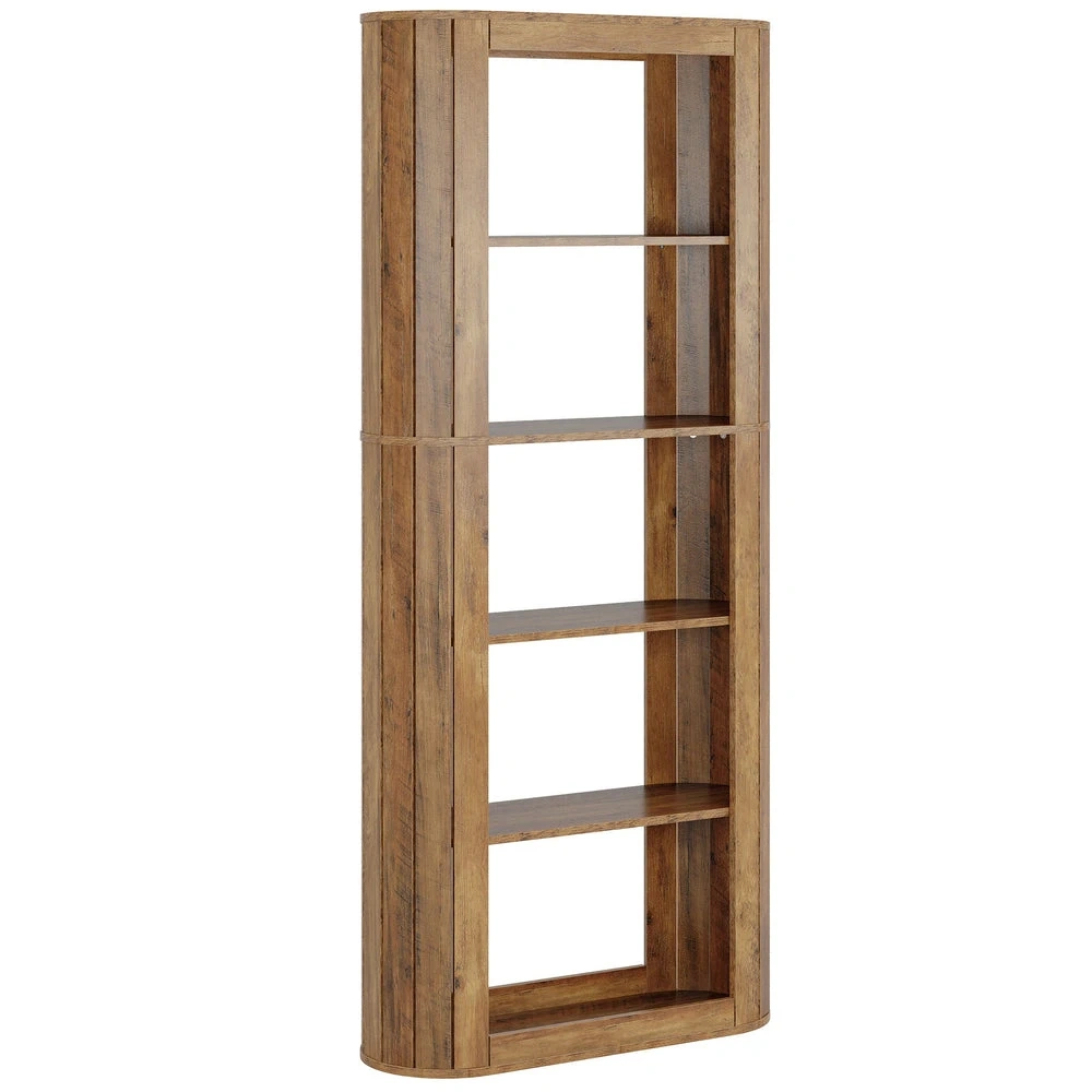 This wooden bookshelf features a rustic design with 5 shelves, perfect for displaying your favorite books and decor. It's made of sturdy wood and has a warm, natural finish. Key Specifications: - Dimensions: 70.87" height x 31.5" width x 11.81" depth - Shelf Depth: 12.6" - Weight Capacity: 50 lbs