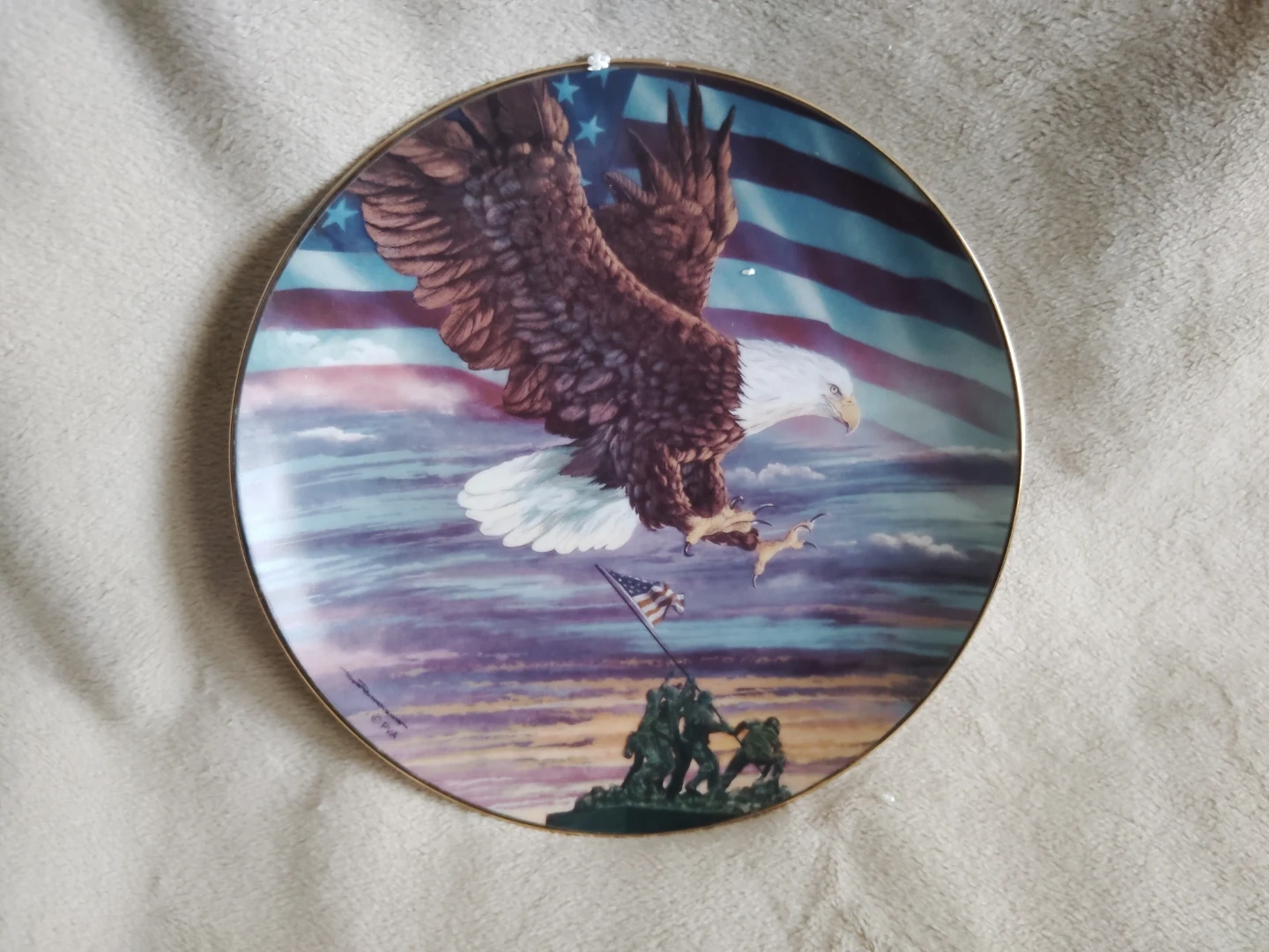 I'm selling a decorative plate titled "Home of the Brave" by Don Patterson. It was issued by the Paralyzed Veterans of America as an official premiere edition. It's a limited edition, forever limited to 45 firing days and decorated in the USA. Plate No. 10760. Please note that it is not for food use and is intended as a decorative accessory