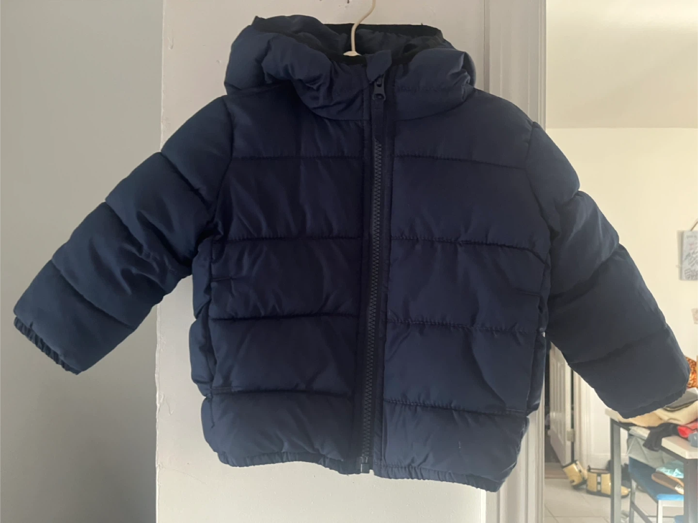 Here's a cozy navy blue puffer jacket! It's in great shape and ready to keep baby warm. Perfect for the colder weather coming up. In great condition. Coming from a smoke & pet free home. 12-18 months.