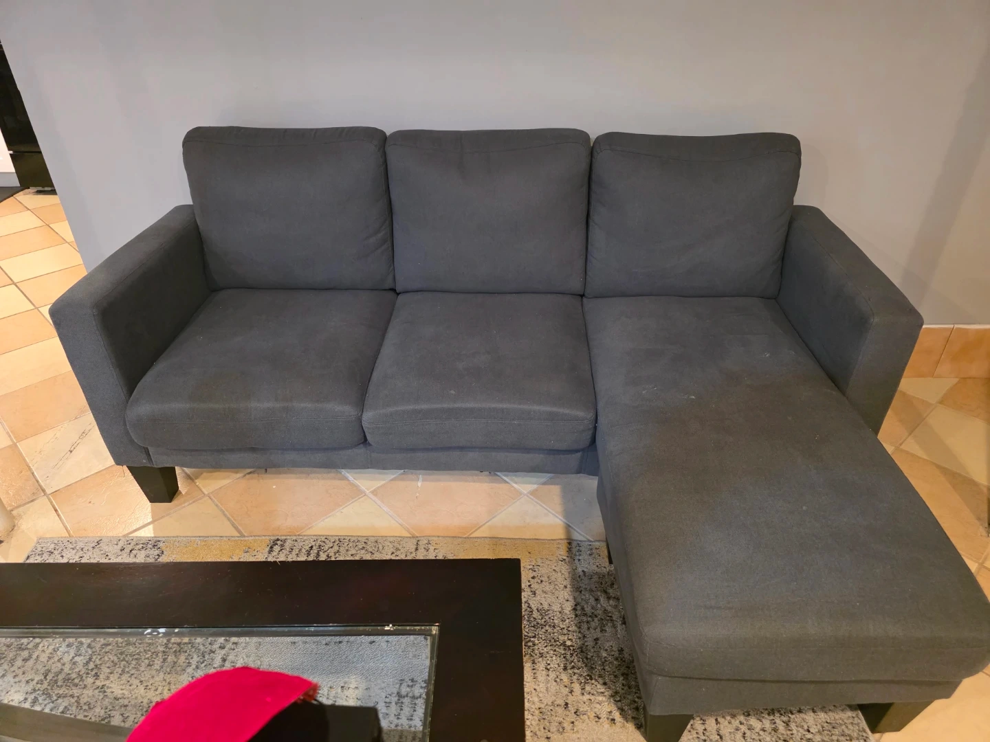 Selling a comfortable gray sectional sofa in great condition! It's perfect for lounging and fits well in various living spaces. The sectional design offers ample seating and a cozy chaise for relaxing. It's a great addition to any home!
