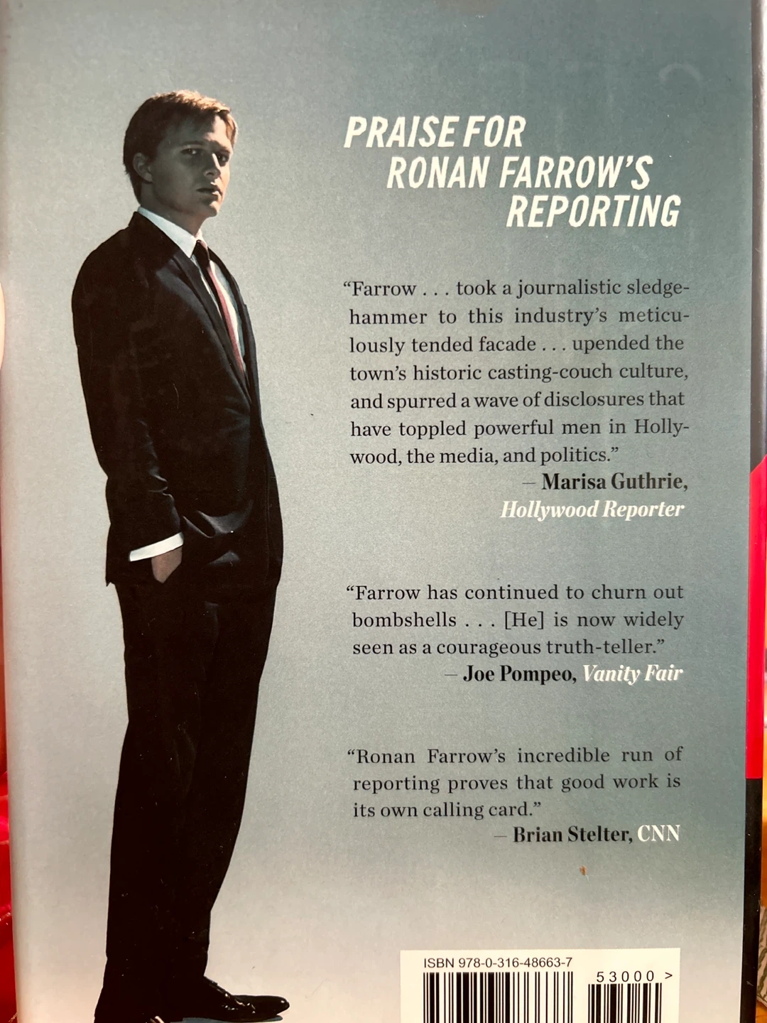 Selling a copy of "Catch and Kill" by Ronan Farrow! It's a gripping read about lies, spies, and a conspiracy to protect predators