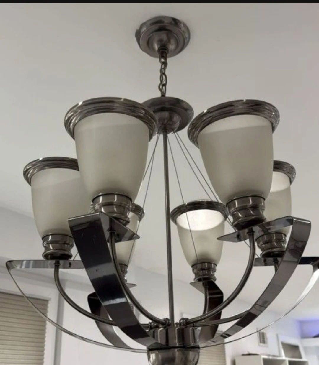 6 light chandelier .25 inches wide, 25 inches height. Paid $500. Works great. $75 great price. Pickup ASAP. CASH. Sheepshead bay brooklyn