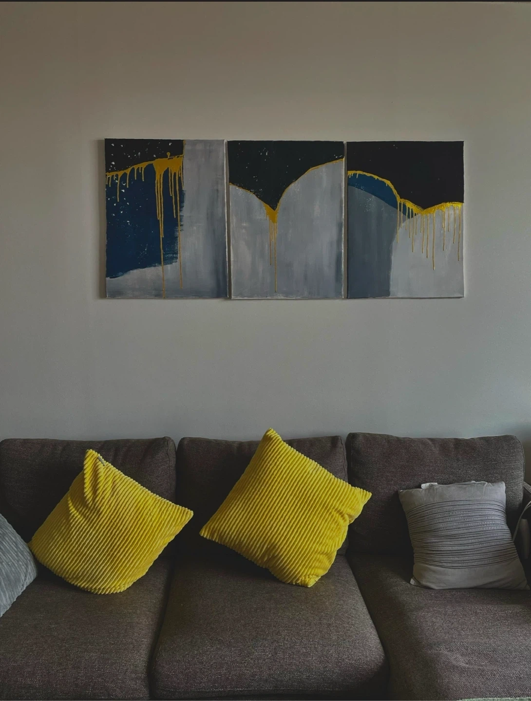 Buy & SellTriptych Painting - Abstract ArtTriptych Painting - Abstract Art$270Selling a triptych painting with an abstract design. It features a combination of blues, grays, and gold accents. This piece would be a great addition to any room!0 chats·1 favorites·21 viewsSELLERverifiedDeeUpper East Side650 reviewsWHERE TO MEET217 E 96th St