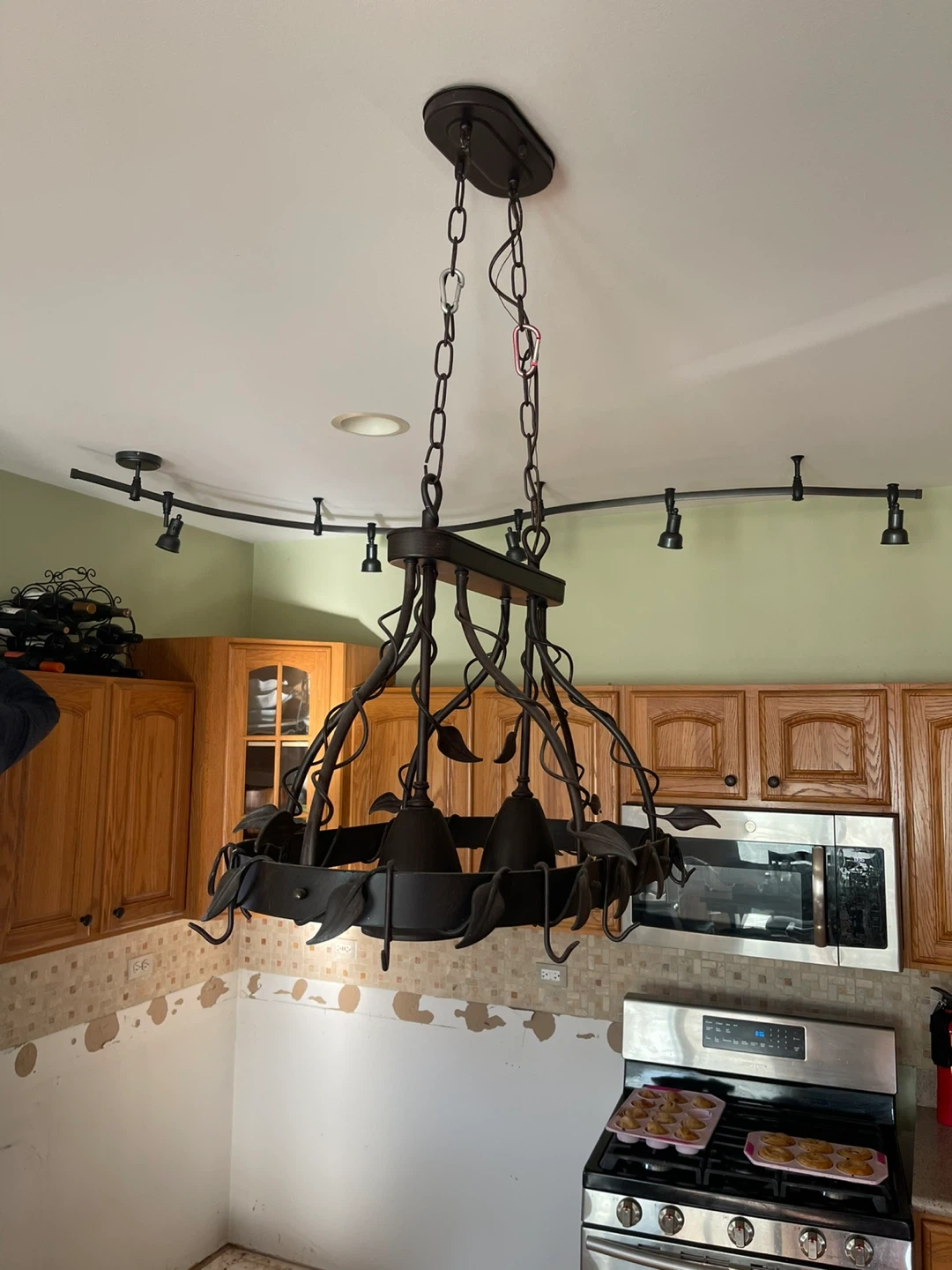 Buy & SellWrought Iron Leaf ChandelierWrought Iron Leaf Chandelier$34Selling a wrought iron chandelier with a leaf design. It has a rustic and elegant look that would be great for a dining room or kitchen. The chandelier is in good condition and ready to hang!ConditionGood0 chats·0 favorites·3 viewsSELLERverifiedLaurenLindenhurst600 reviewsWHERE TO MEETPark in Painted Lakes Neighborhood