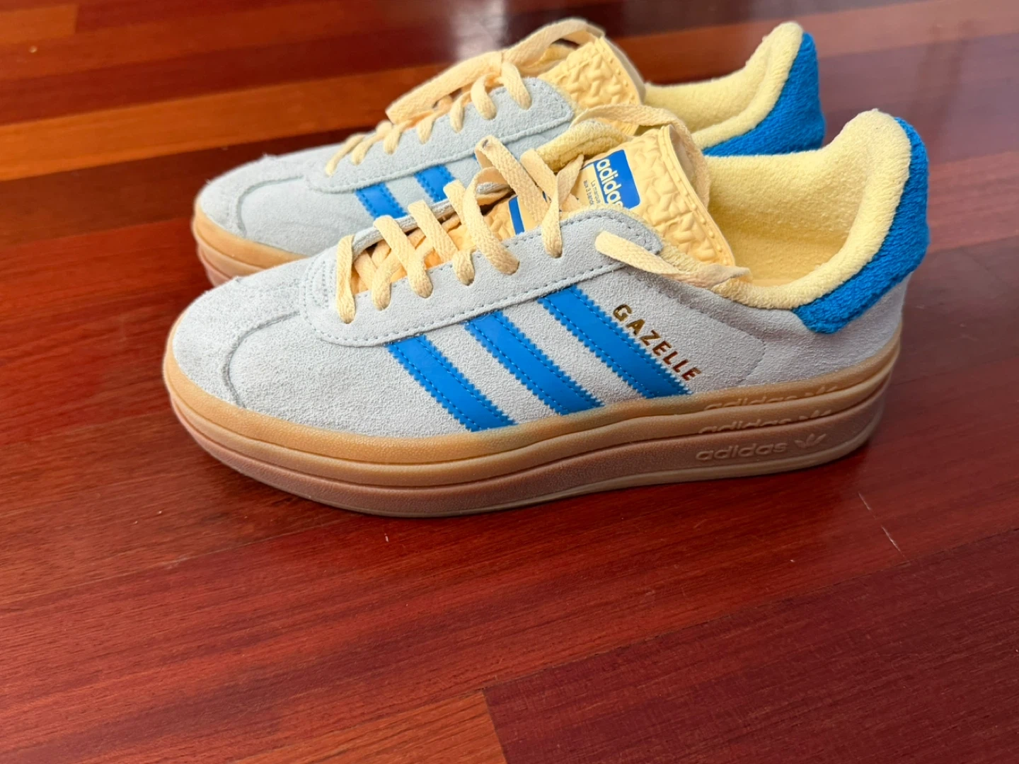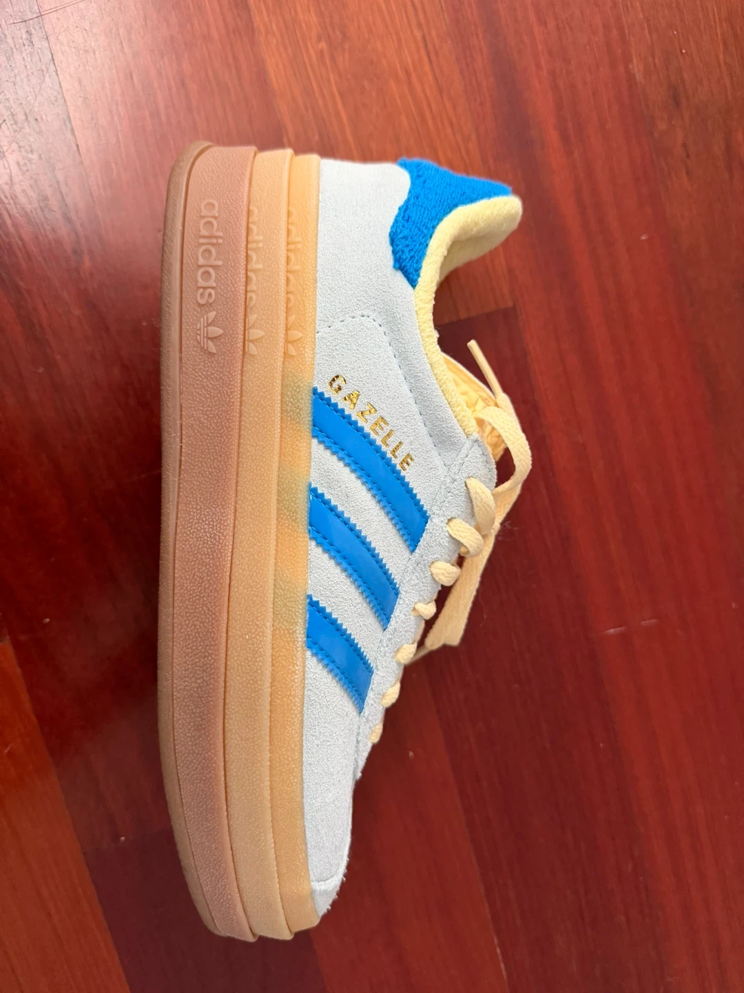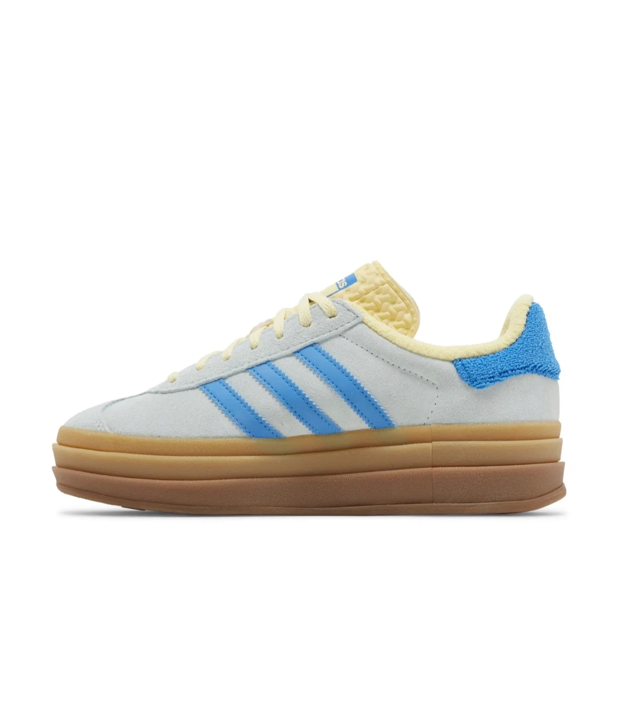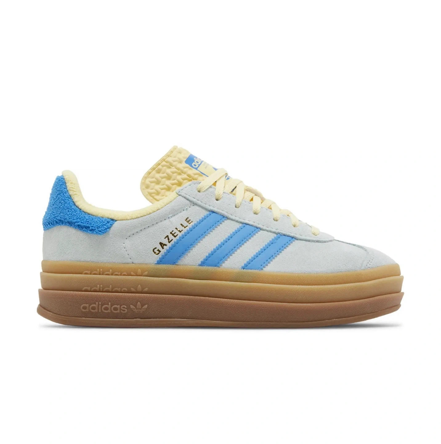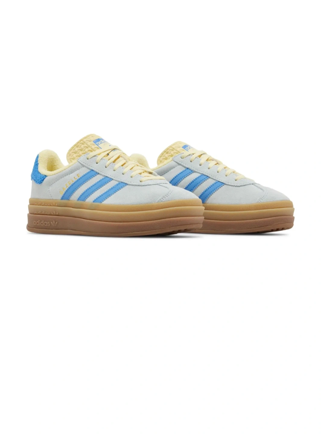 Get ready to step up your shoe game with these Adidas Gazelle Bold sneakers! The iconic Gazelle design gets a modern twist with a bold, stacked sole. Features a soft suede upper with the classic three stripes in a vibrant blue, complemented by a retro-cool color palette. Perfect for adding a touch of vintage flair to any outfit
