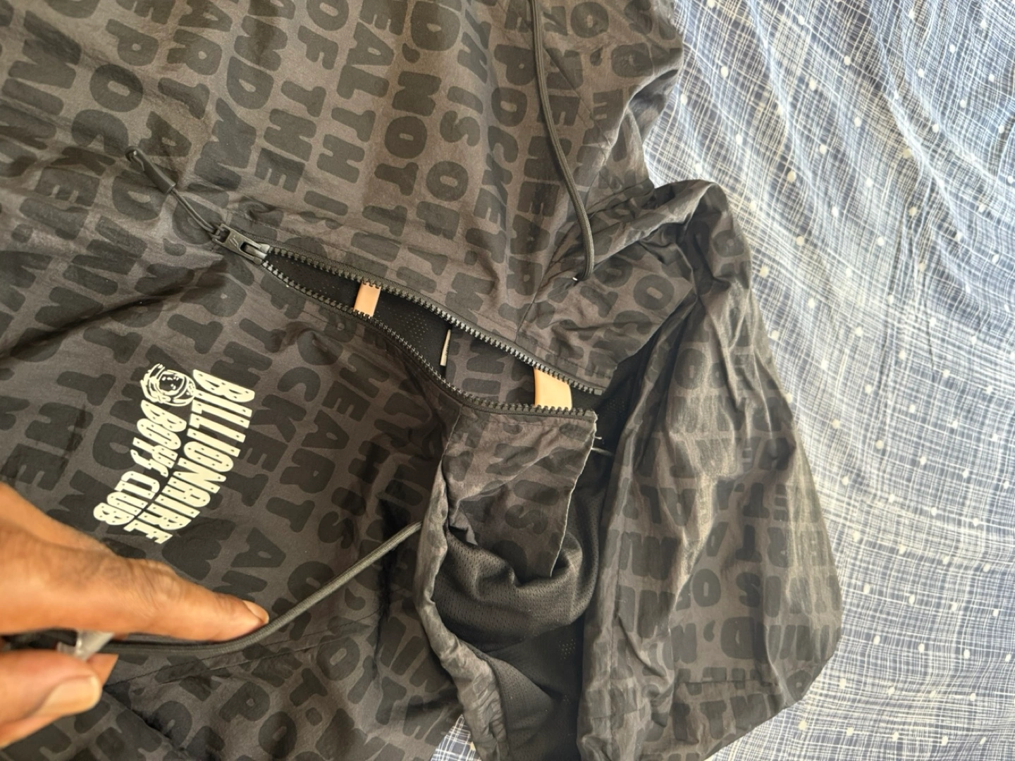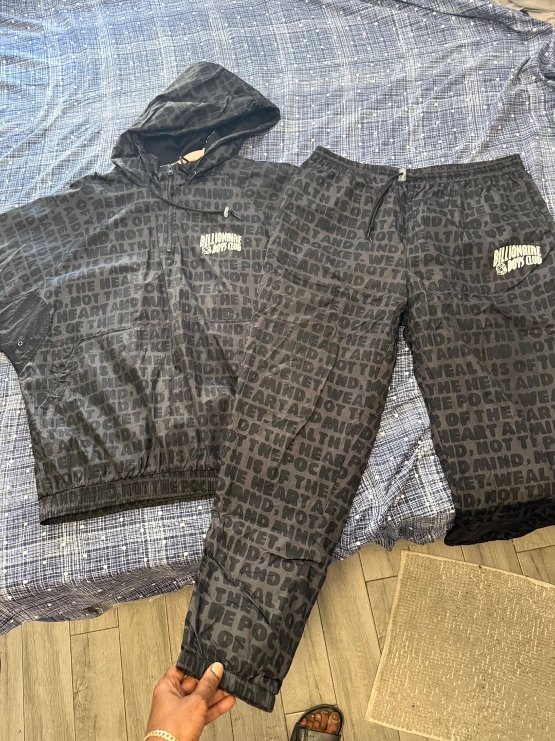 10Selling a Billionaire Boys Club tracksuit in size XXL. The material is 100% nylon shell with 100% polyester lining. It has a stylish all-over print. Perfect for casual wear!