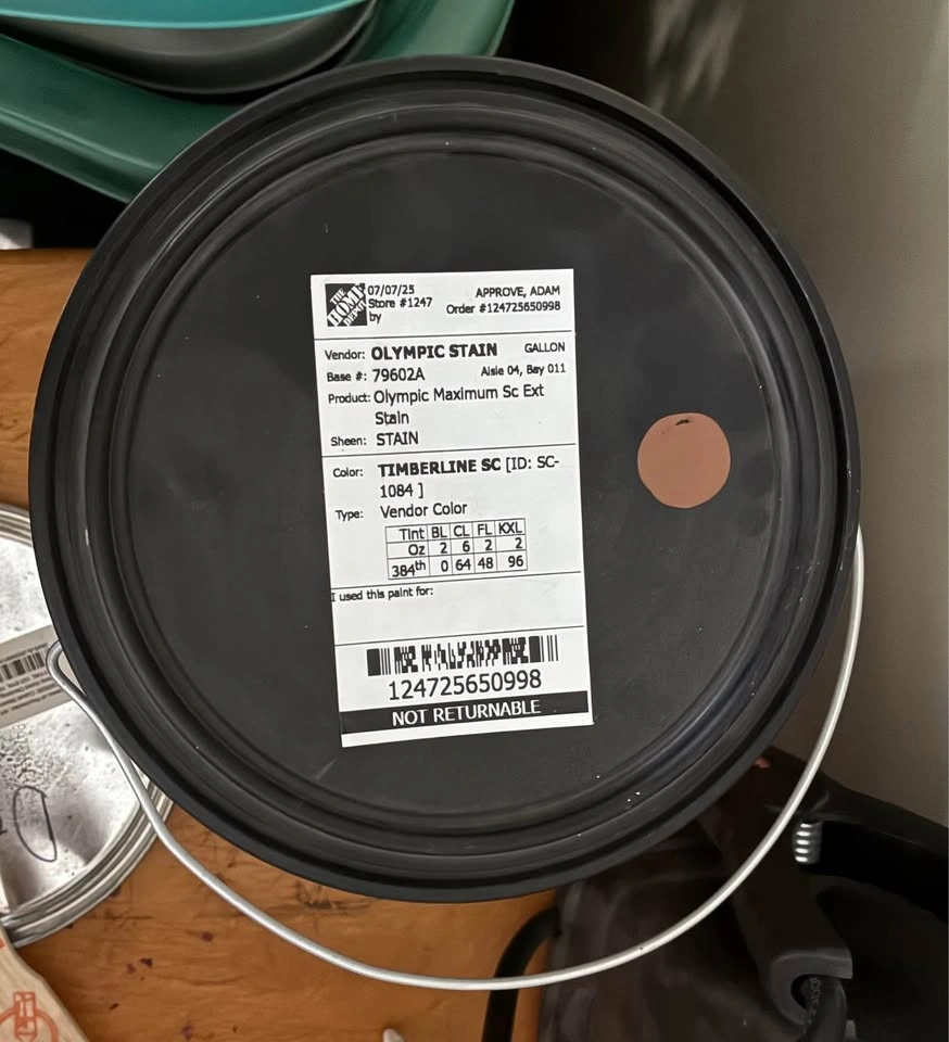 Olympic maximum stain and sealer. Bought 7/7/25 but decided to go a different route. Color is Timberline. See pics. Paid $42. Never opened. Feel free to message if you have any questions!