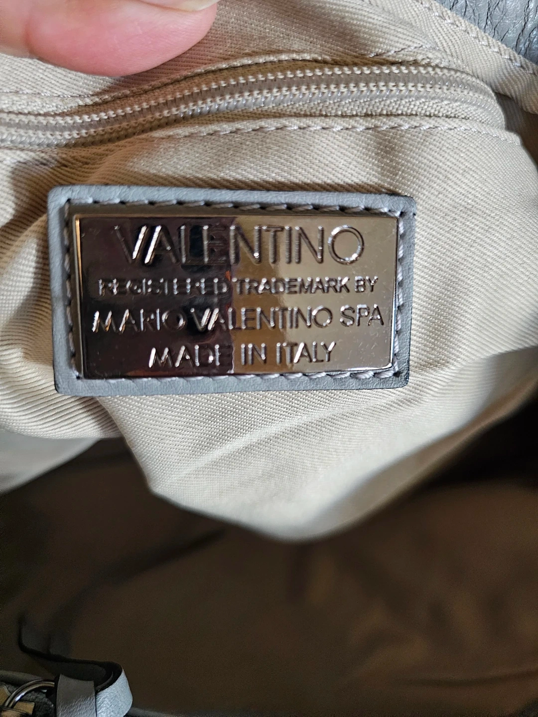 Selling a stylish Valentino shoulder bag in a beautiful gray leather. It features a chain strap and a distinctive 'V' logo design. This bag is perfect for adding a touch of elegance to any outfit!