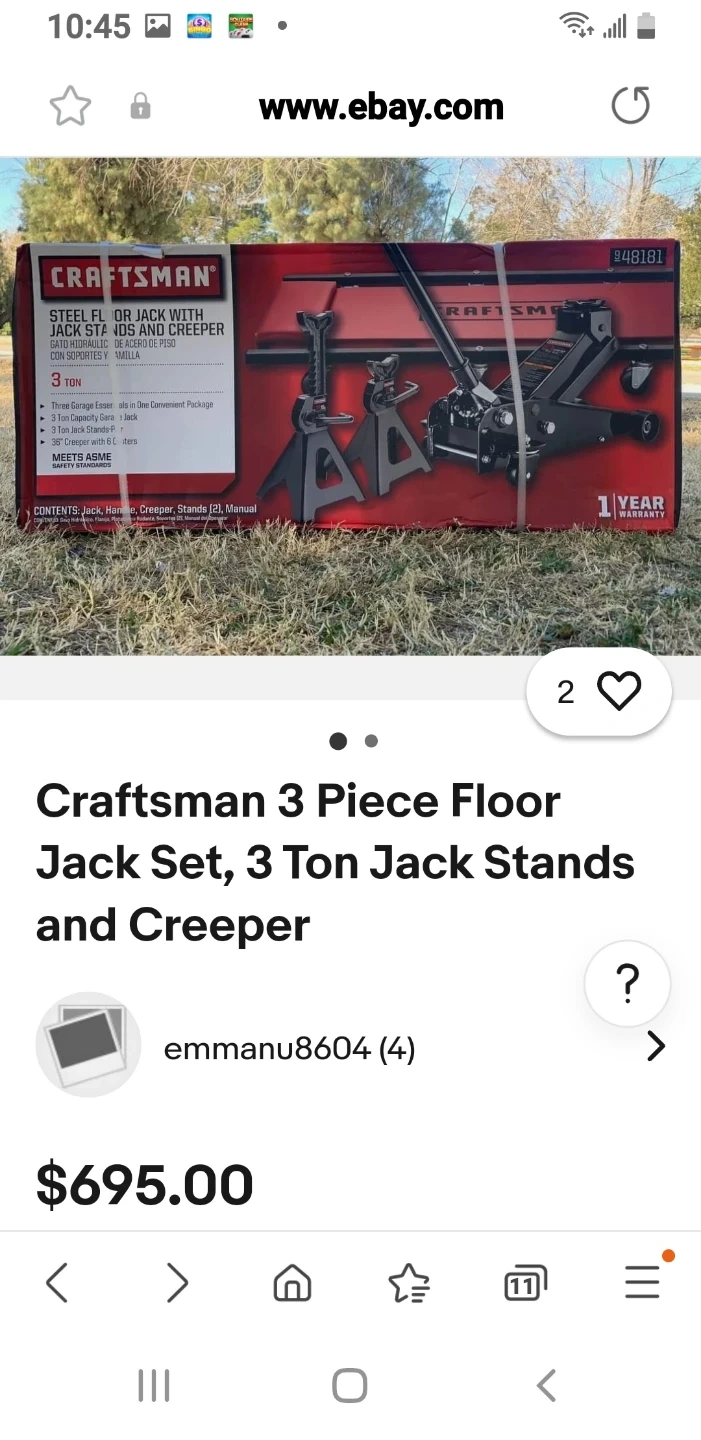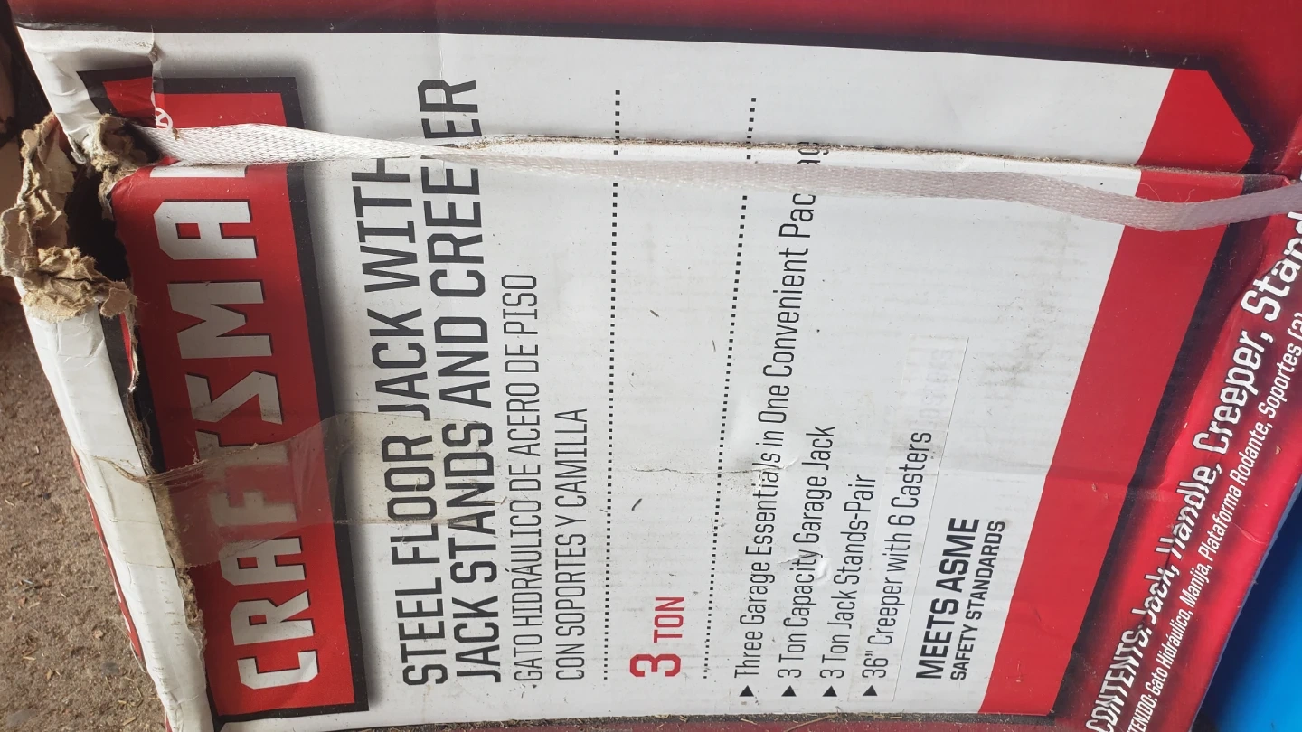 Selling a Craftsman 3-piece floor jack set. It includes a 3-ton jack, jack stands, and a creeper. Originally bought for $695