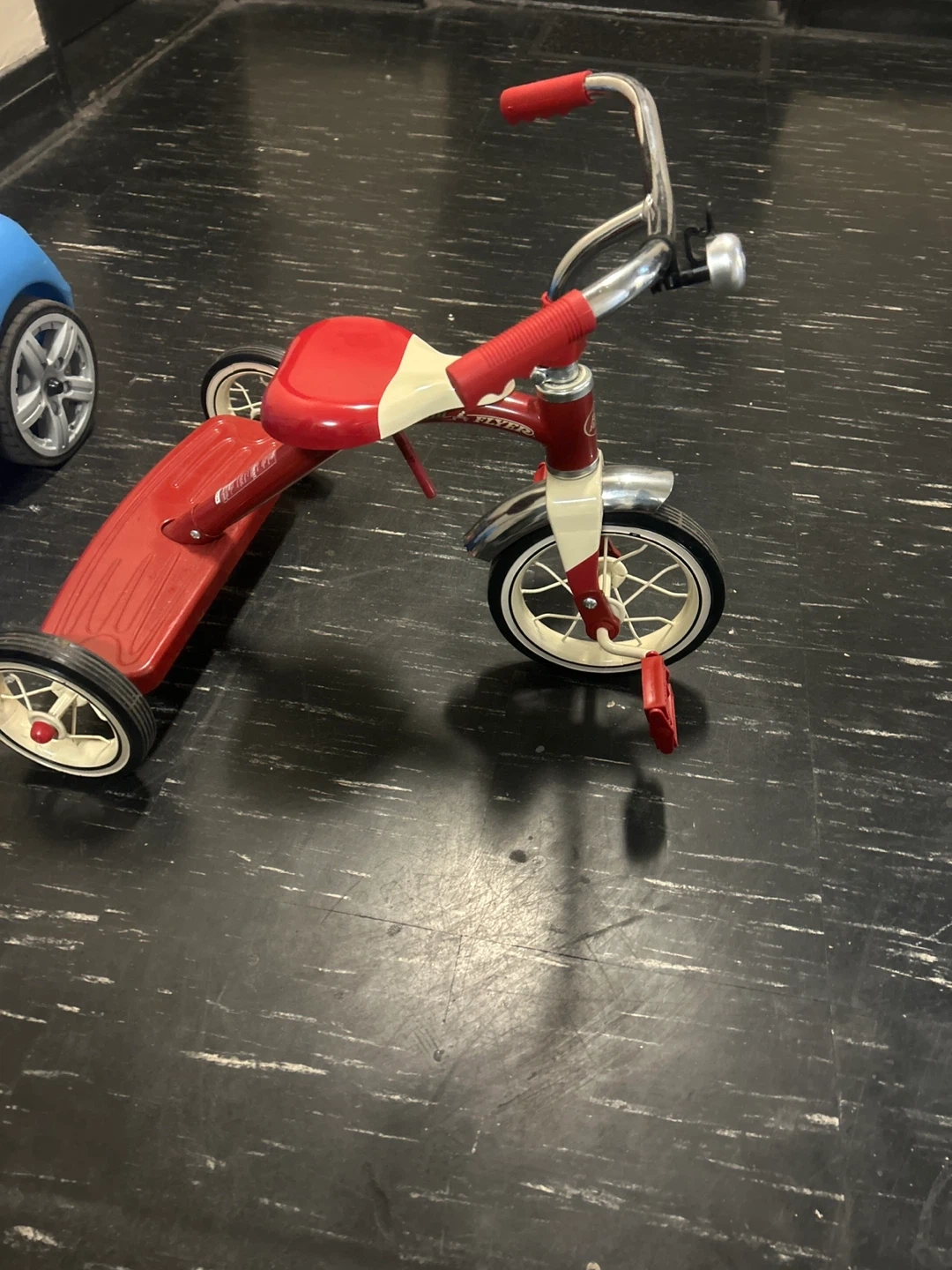 Here's a classic Radio Flyer tricycle in red! It's perfect for little ones learning to ride. This tricycle features a sturdy steel frame and a comfortable seat. It's in great condition and ready for a new rider!