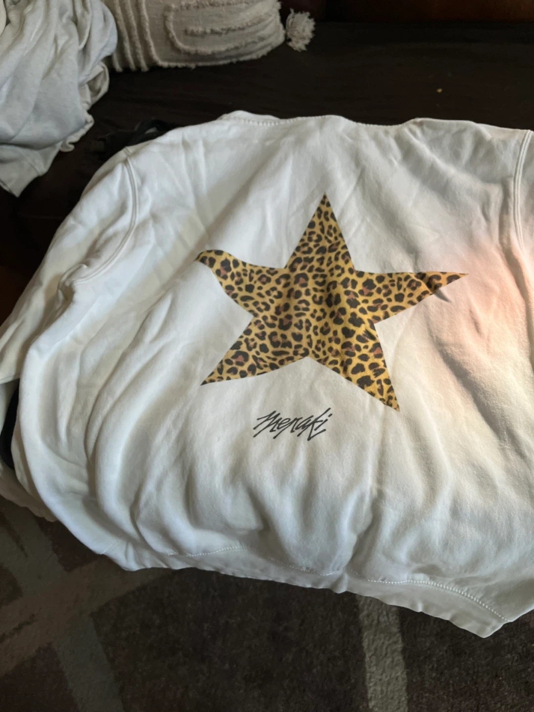 Selling a white Lane Seven hoodie in size large! It features a star print on the back. The material feels soft and comfortable, perfect for everyday wear