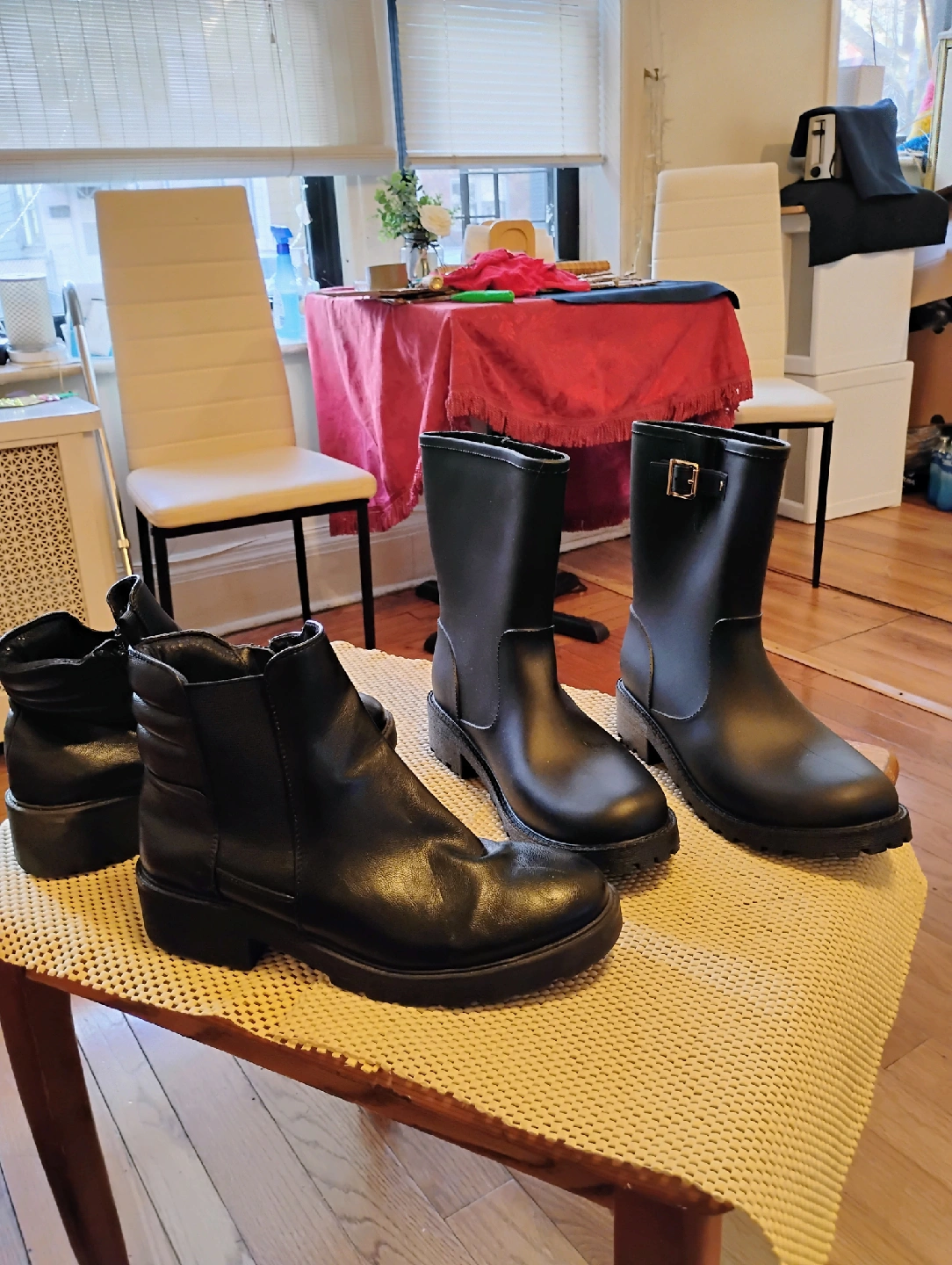 Selling a pair of black ankle boots and a pair of mid-calf boots. They're both in good condition and ready for a new home! Perfect for adding a touch of style to any outfit