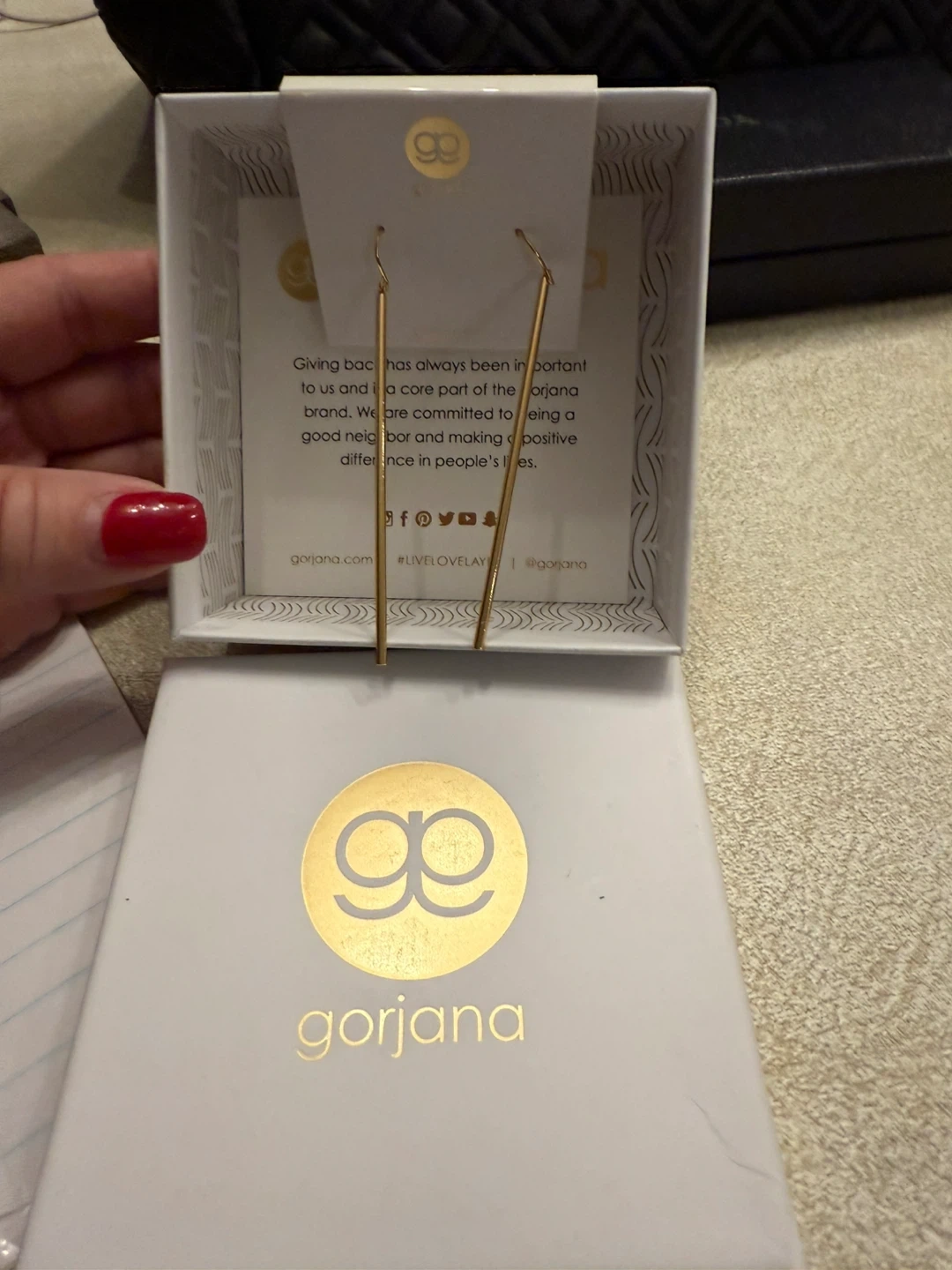 Selling a pair of Gorjana Linear Bar Drop Earrings in gold. They come in their original box! These earrings are a simple and elegant addition to any outfit, perfect for both everyday wear and special occasions