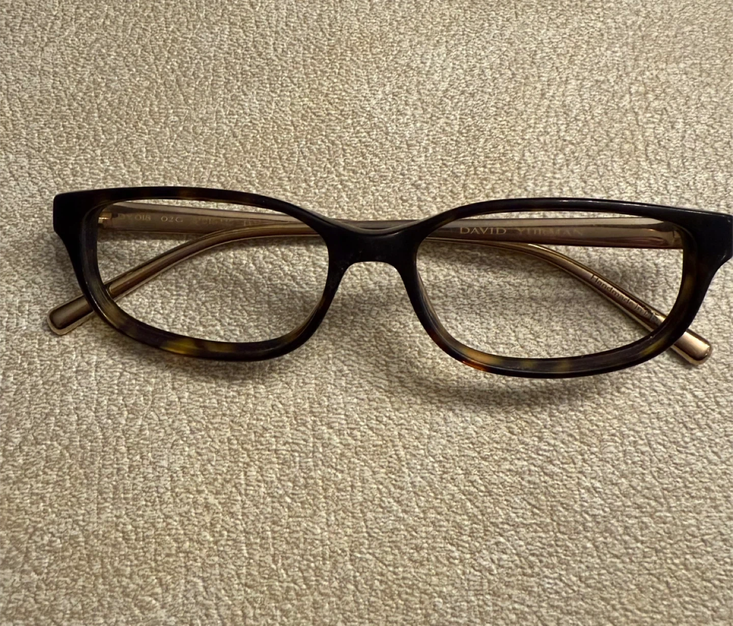 Selling a pair of David Yurman eyeglasses. The frame is a dark brown color with tortoise accents. The glasses are handmade in Italy. Can be filled with prescription lenses.