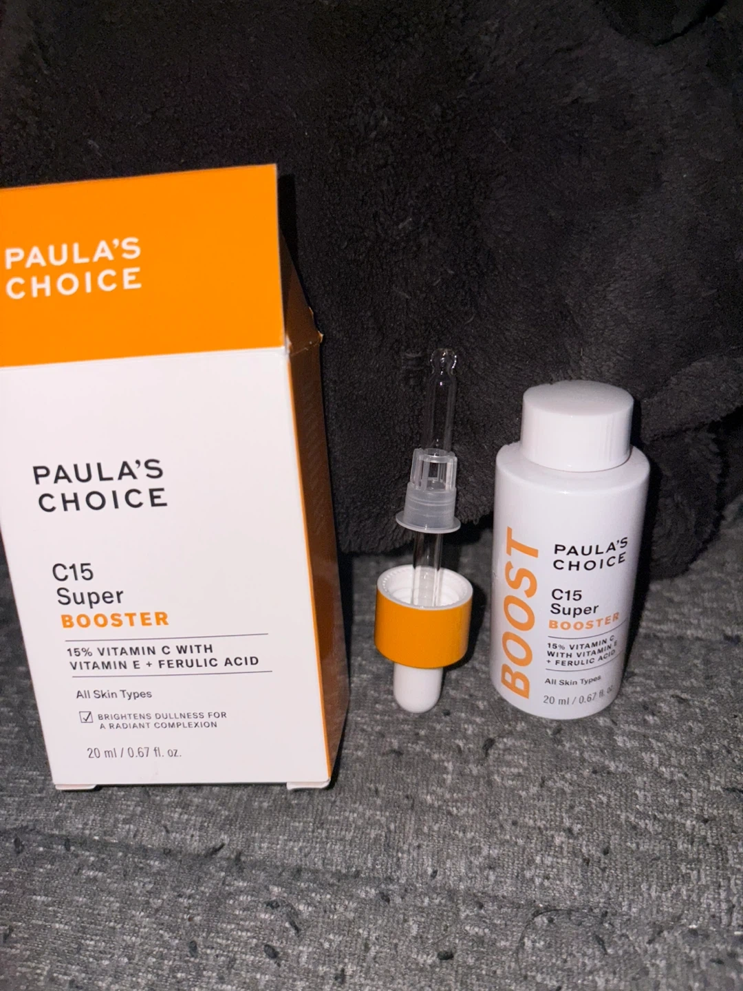 Selling a Paula's Choice C15 Super Booster! It's a 20 ml / 0.67 fl oz bottle that brightens dullness for a radiant complexion. It contains 15% Vitamin C with Vitamin E + Ferulic Acid and is suitable for all skin types