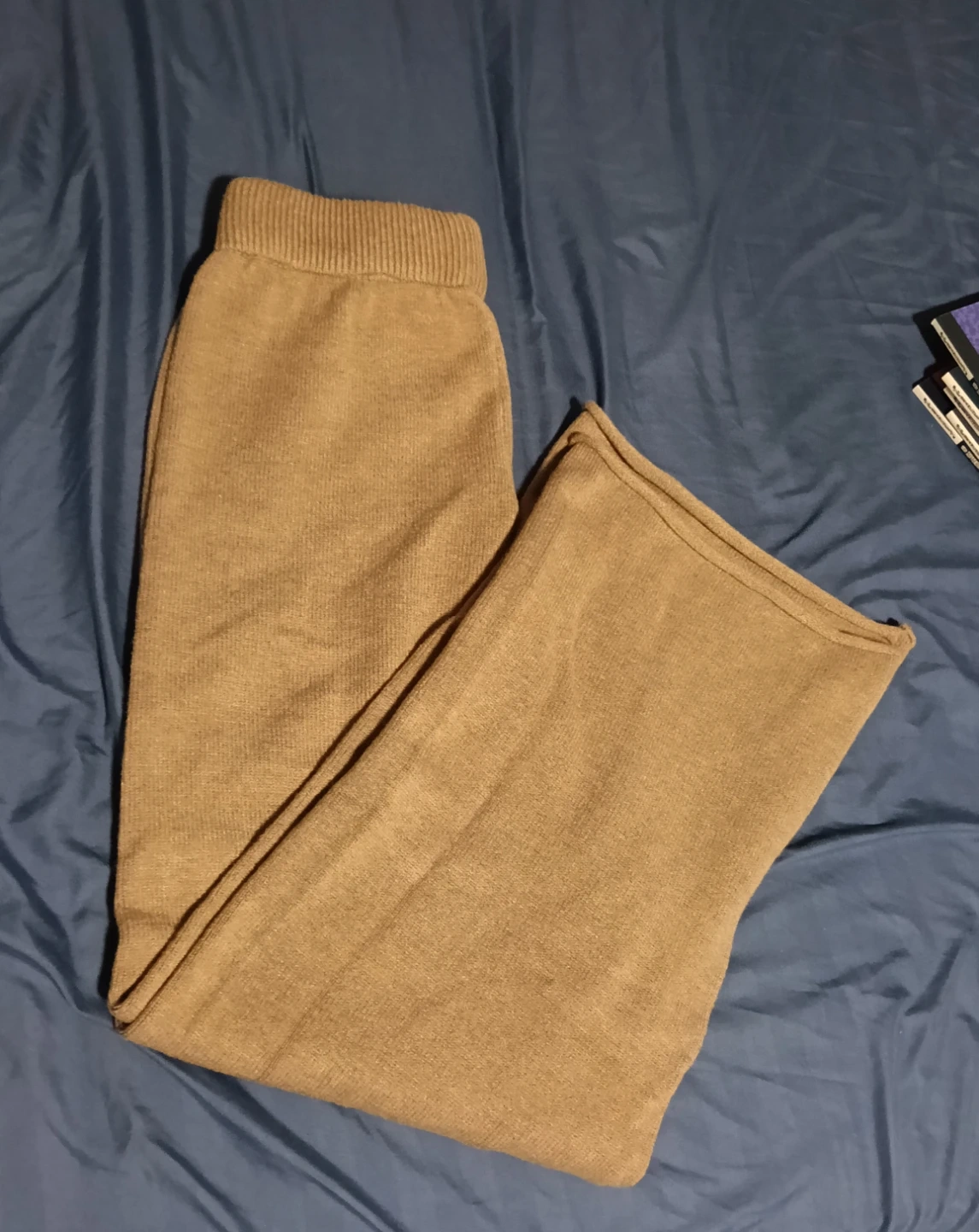 Comfy, wide-leg knit pants in a neutral beige colour! Perfect for lounging around the house or a casual day out. The material is soft and cozy, making them ideal for cooler weather.