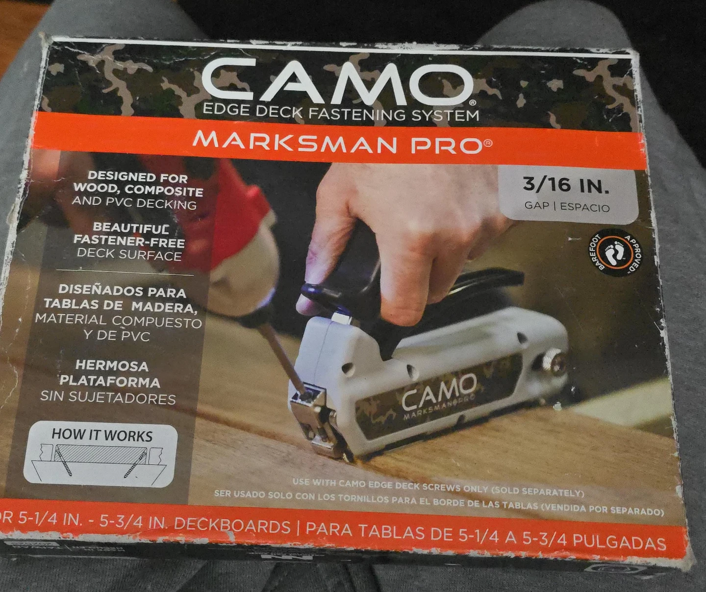 Selling a CAMO Marksman Pro Edge Deck Fastening System! It's designed for wood, composite, and PVC decking. It creates a beautiful, fastener-free deck surface. This system automatically guides the fastener into the wood, composite, and PVC edge deck boards and requires 3/16 inch gap spacing.