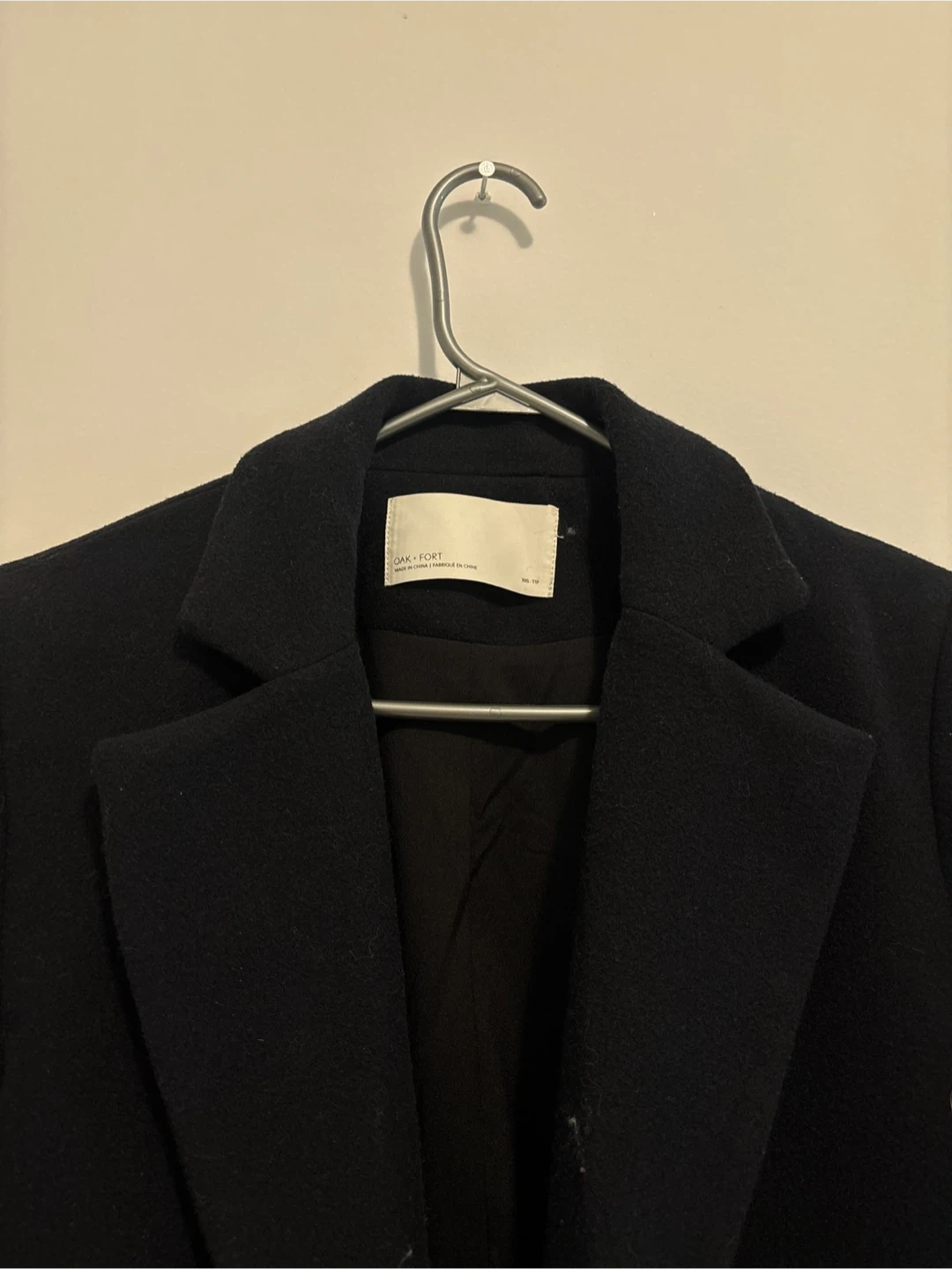 Selling a stylish black coat from Oak + Fort! It's a wool blend, perfect for staying warm during those chilly days. A classic piece that goes with everything!