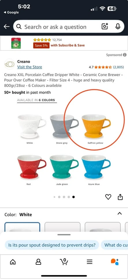 Buy & SellCreano XXL Coffee Dripper - Ceramic Cone Brewer - yellowCreano XXL Coffee Dripper - Ceramic Cone Brewer - yellow$22Brand newWHERE TO MEETCheck LocationView MapSELLERChrisPlainview100 reviews0 chats·0 favorites·3 views