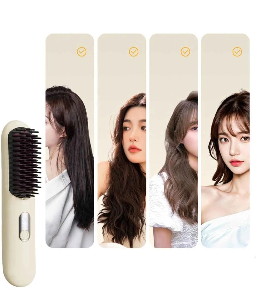 Ionic Hair Straightening Brush with 4 Temps Fast Heating, Advanced Type-C Charging Hair Straightener Comb with Anti-Scald LED Display, Heat Brush Straightener for Women, for All Hair