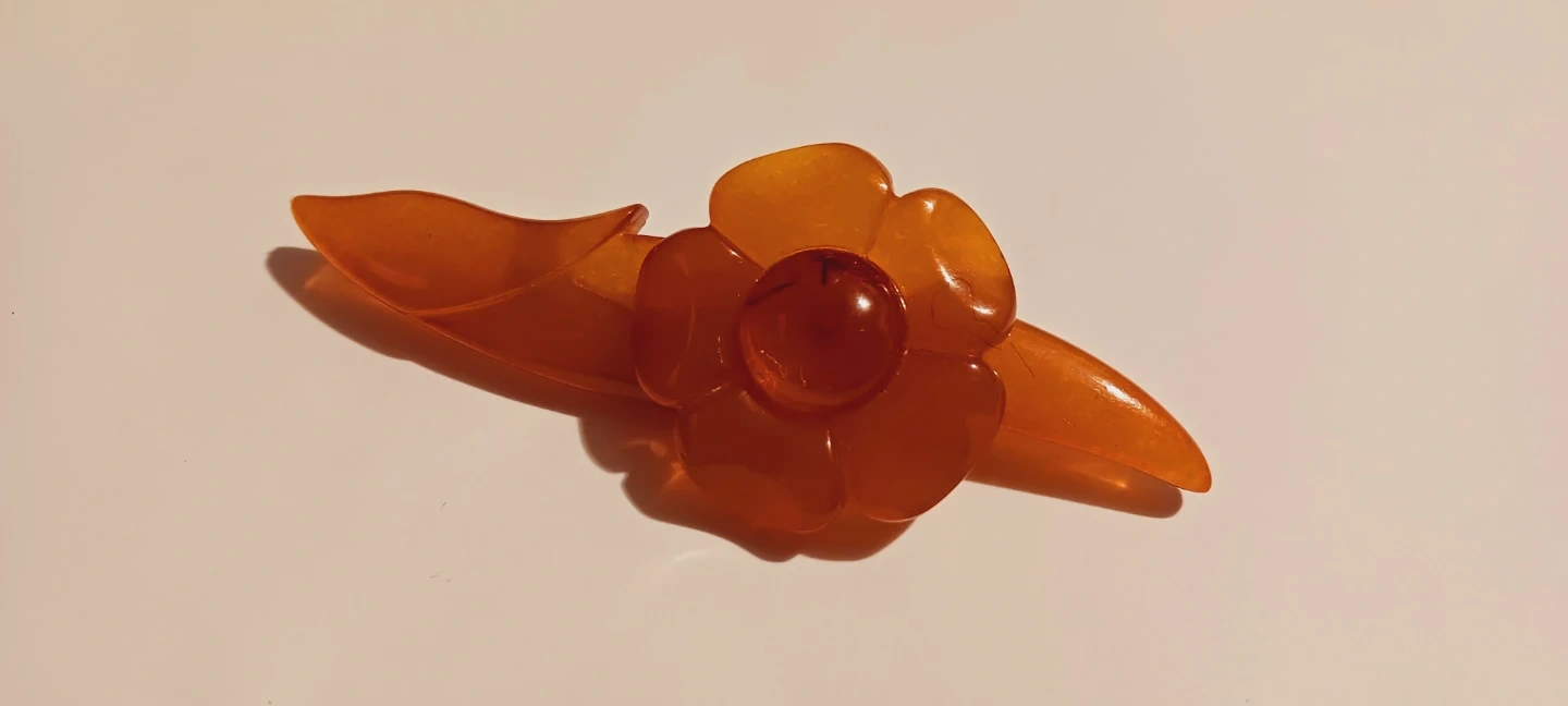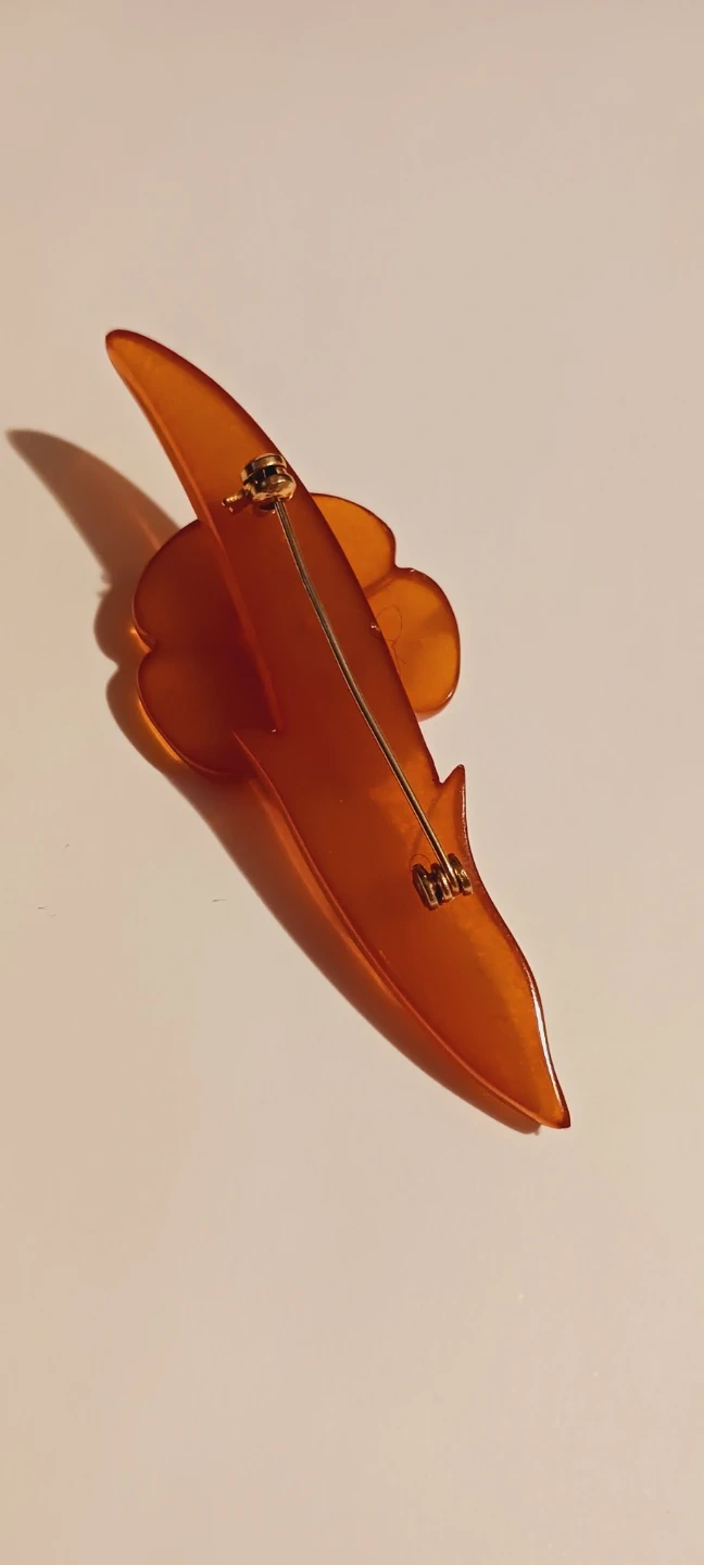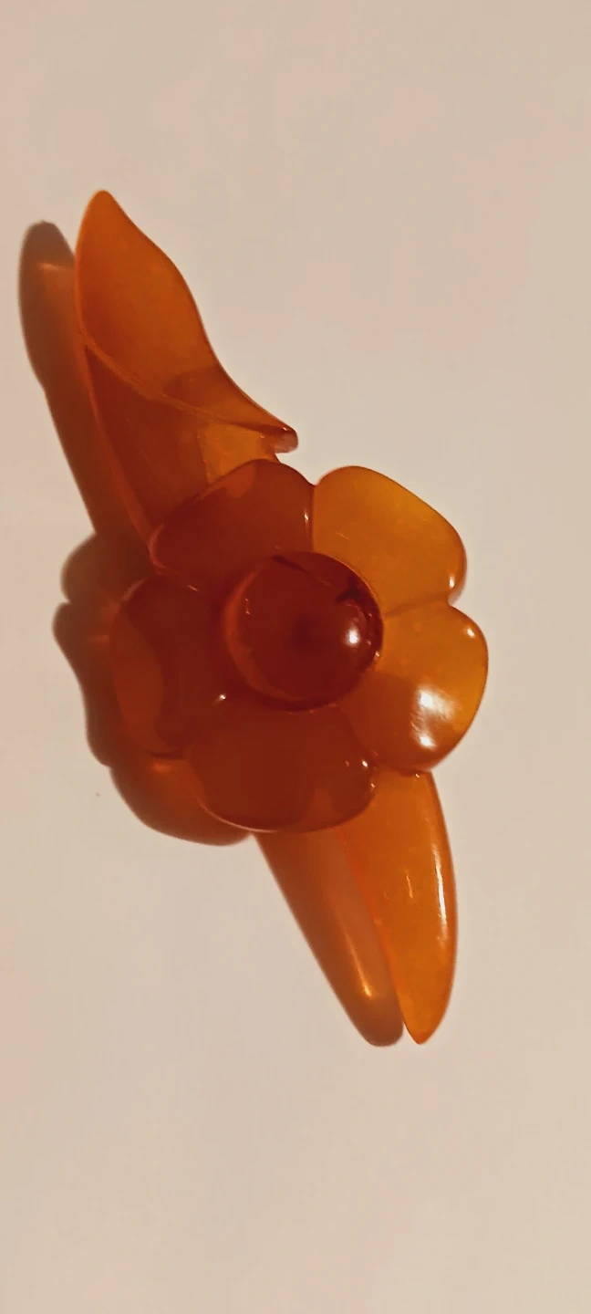 1000+Beautiful Butterscotch Bakelite Vintage Flower Shaped Brooch. It's a unique piece that would add a touch of retro charm to any outfit. It's in great condition and ready to be worn! 3"×1.5". ALL MY PRICES ARE NEGOTIABLE !!