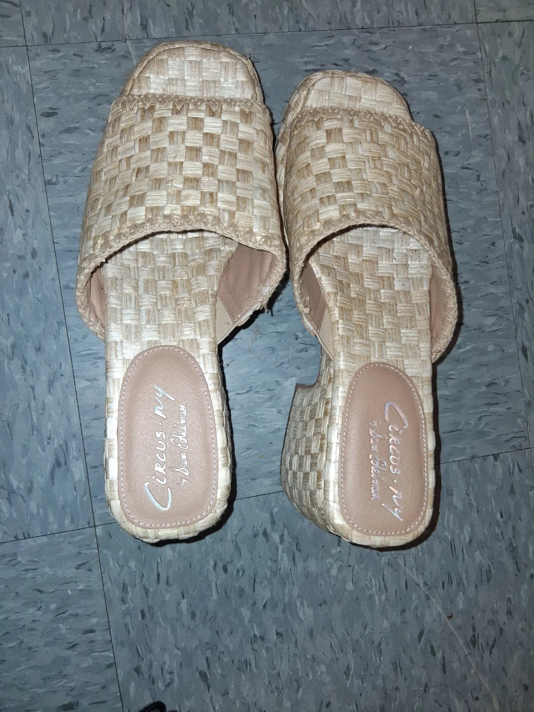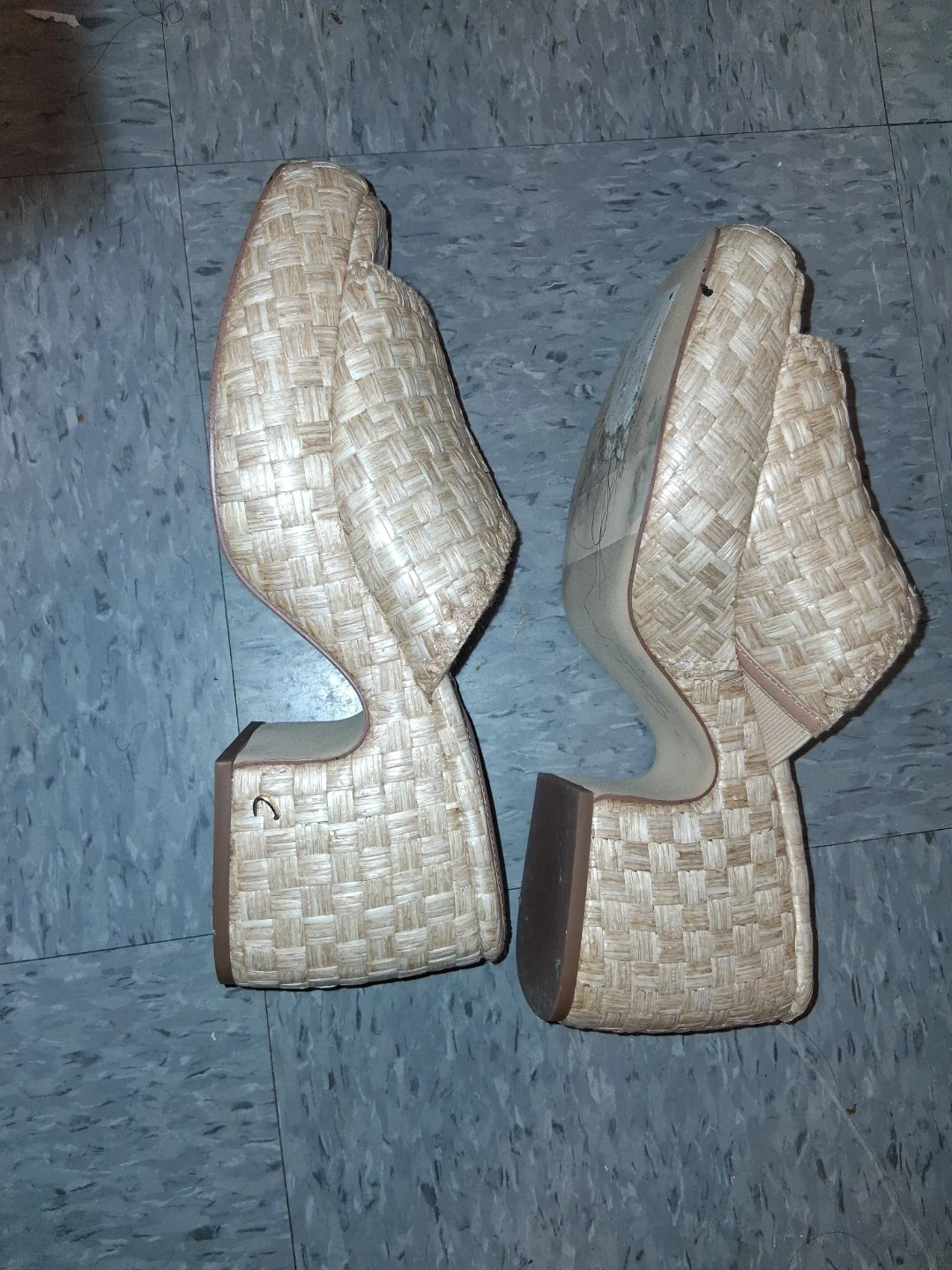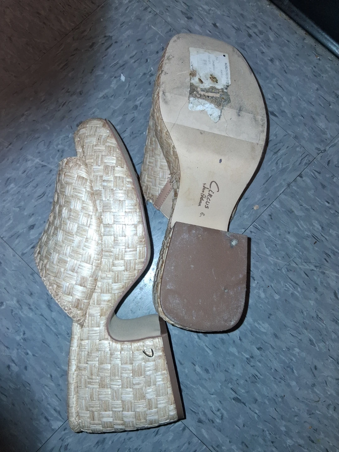 114These are a pair of Circus NY woven heeled sandals in a women's size o 9.5. show some signs of wear on the soles, but are still in good condition for casual wear! The woven texture gives them a unique look that's perfect for spring or summer